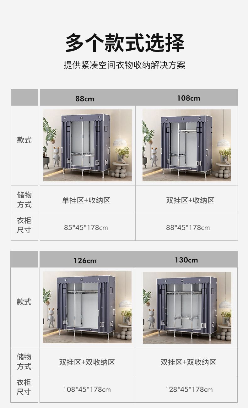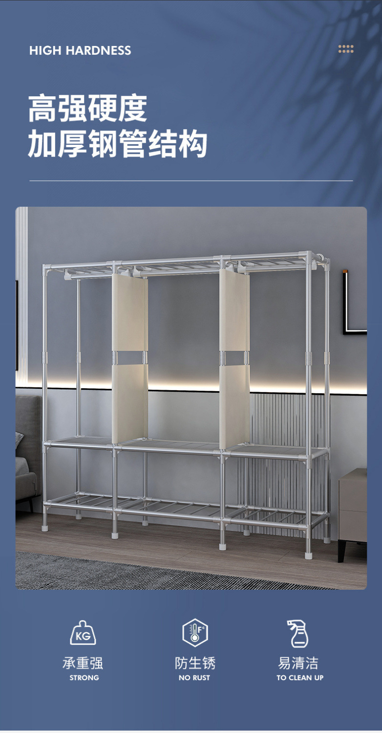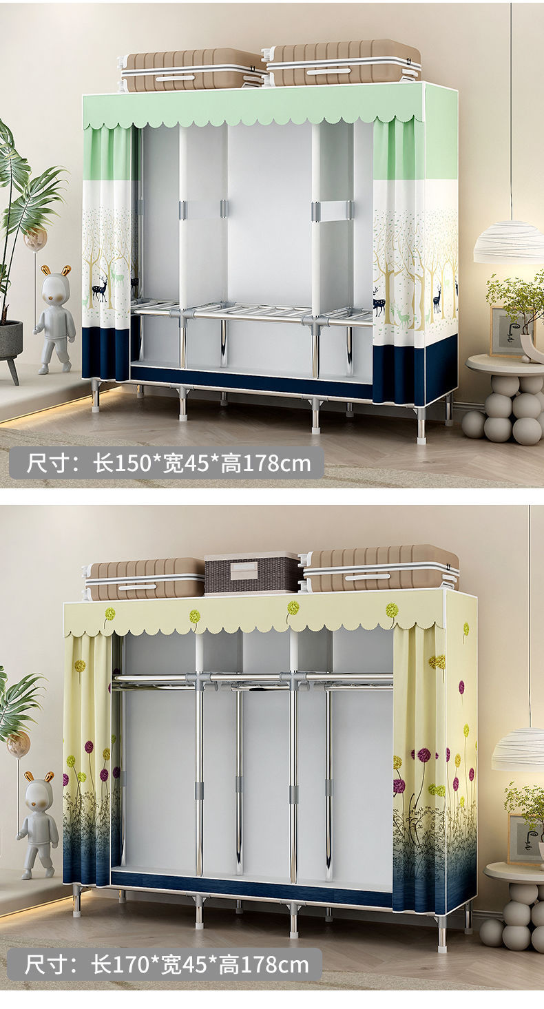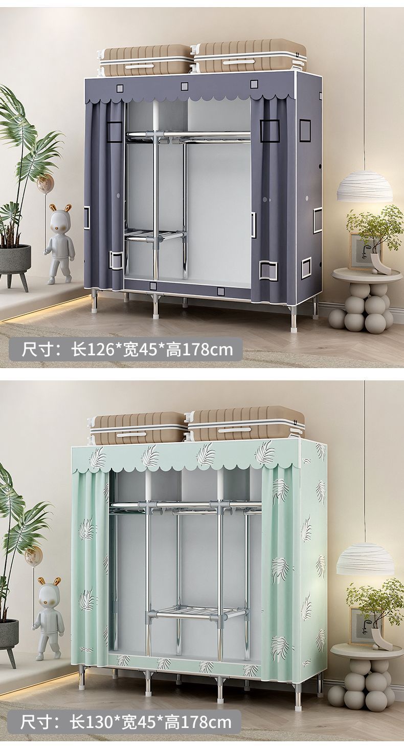 간단한 옷장 홈 침실 조립 천 옷장 임대실 보관 전체 강철 프레임 두꺼운 바닥 옷장 선반스토어 가기