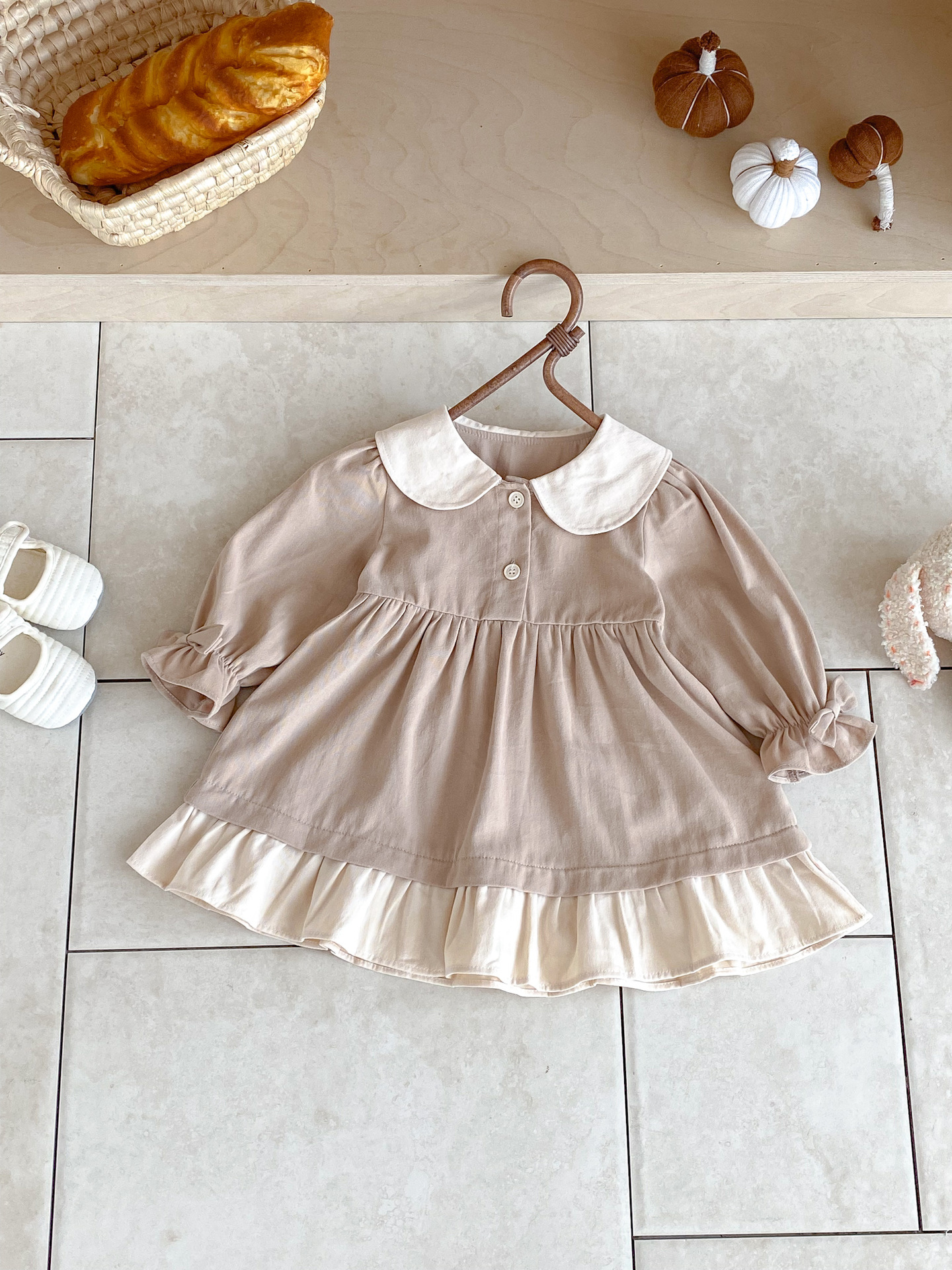여자 드레스 가을 2025 새로운 한국 스타일 소녀 공주 드레스 인형 칼라 아기 소녀 드레스 긴 소매