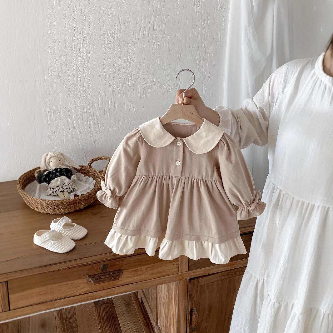 여자 드레스 가을 2025 새로운 한국 스타일 소녀 공주 드레스 인형 칼라 아기 소녀 드레스 긴 소매스토어 가기
