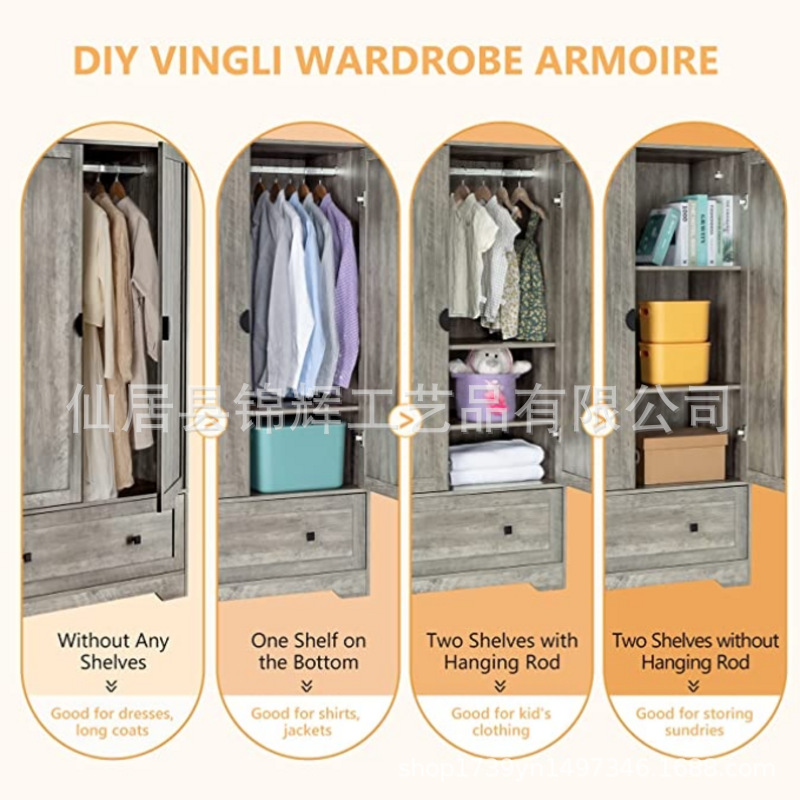 제조업체 맞춤형 복고풍 회색 옷장 홈 침실 가구 보관 옷장 현대 대용량 보관 캐비닛 코트