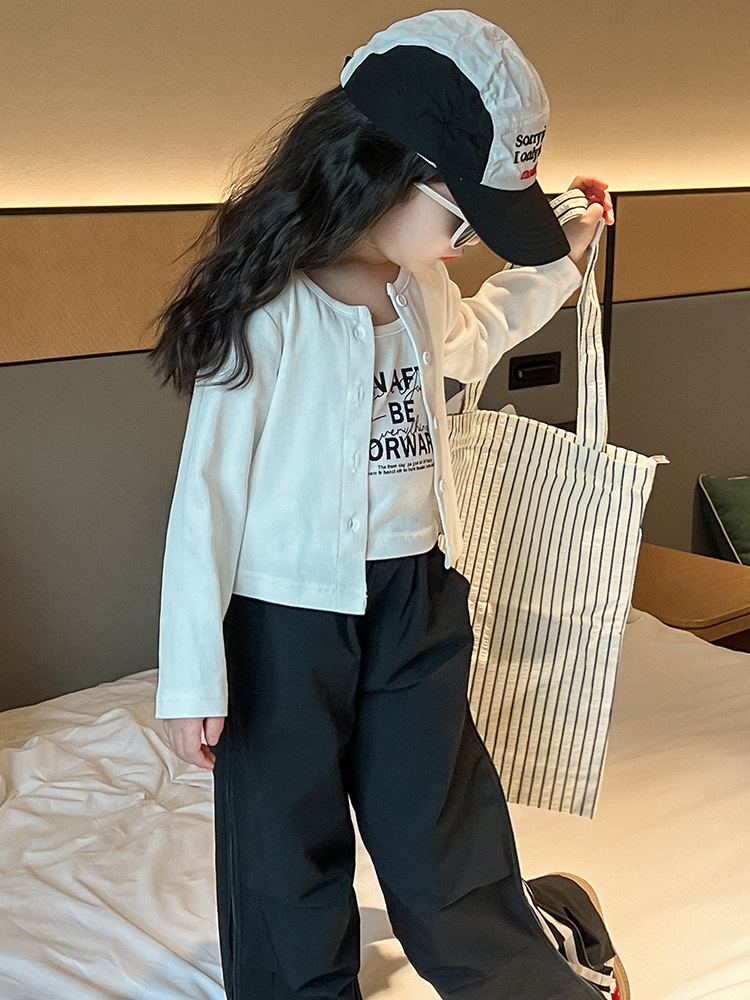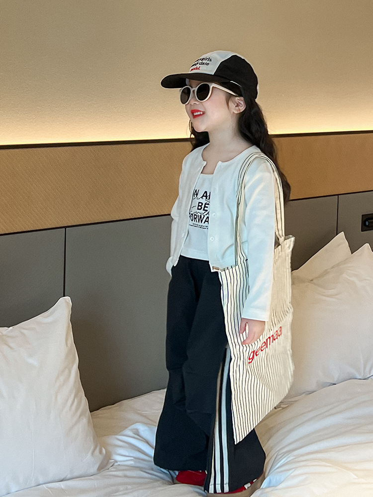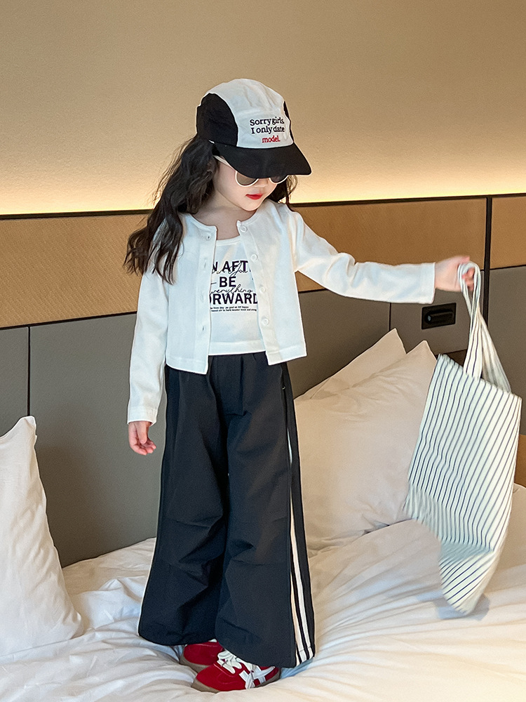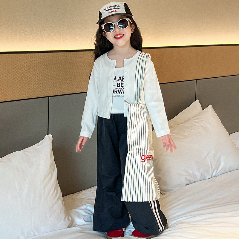 한국판 솔리드 컬러 가디건 트렌디 레터 서스펜더 2025 봄 신작 스트라이프 지퍼 루즈 와이드 팬츠 슈트 트렌디