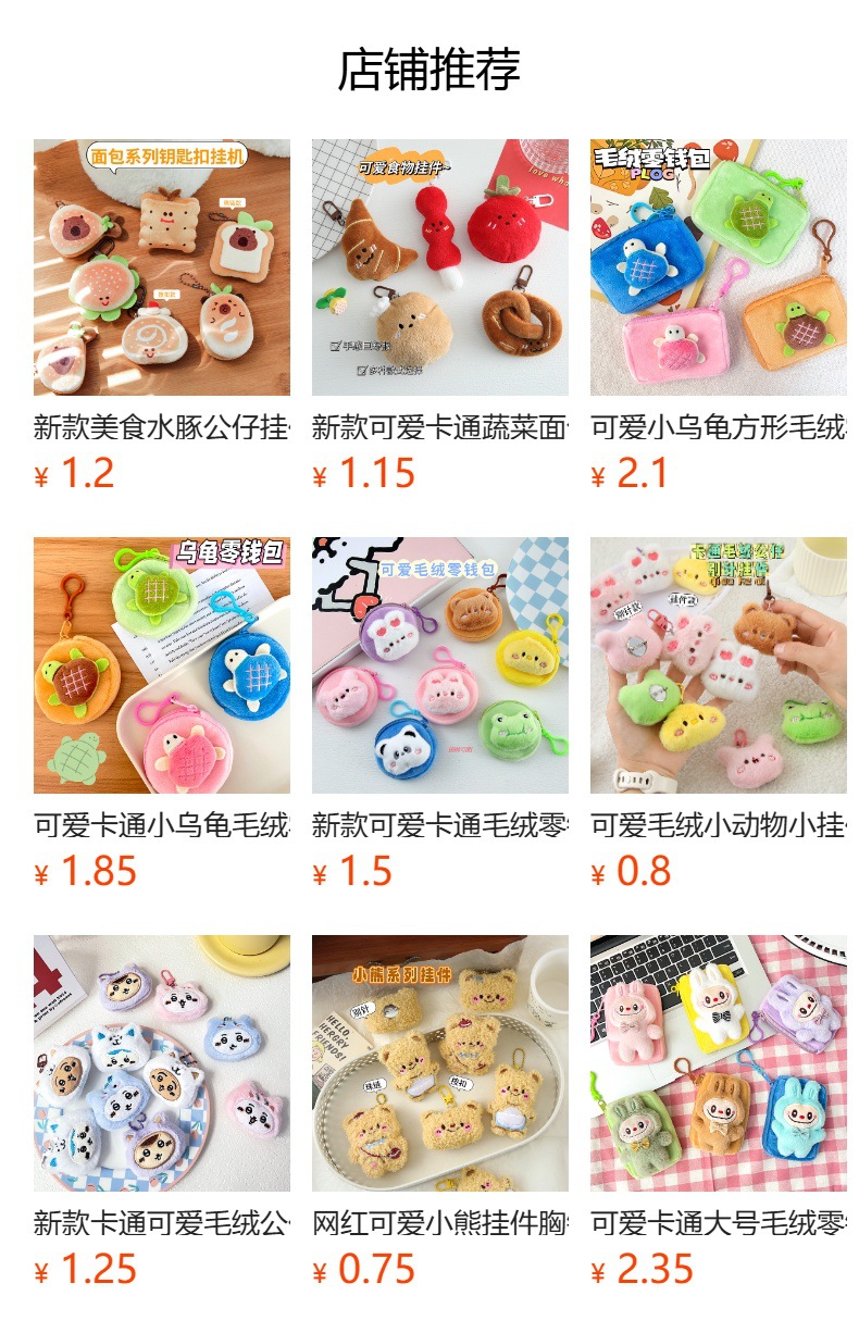 귀여운 봉제 동물 펜던트 만화 인형 열쇠고리 소녀 감성 가방 장식품 이벤트 소품 도매스토어 가기