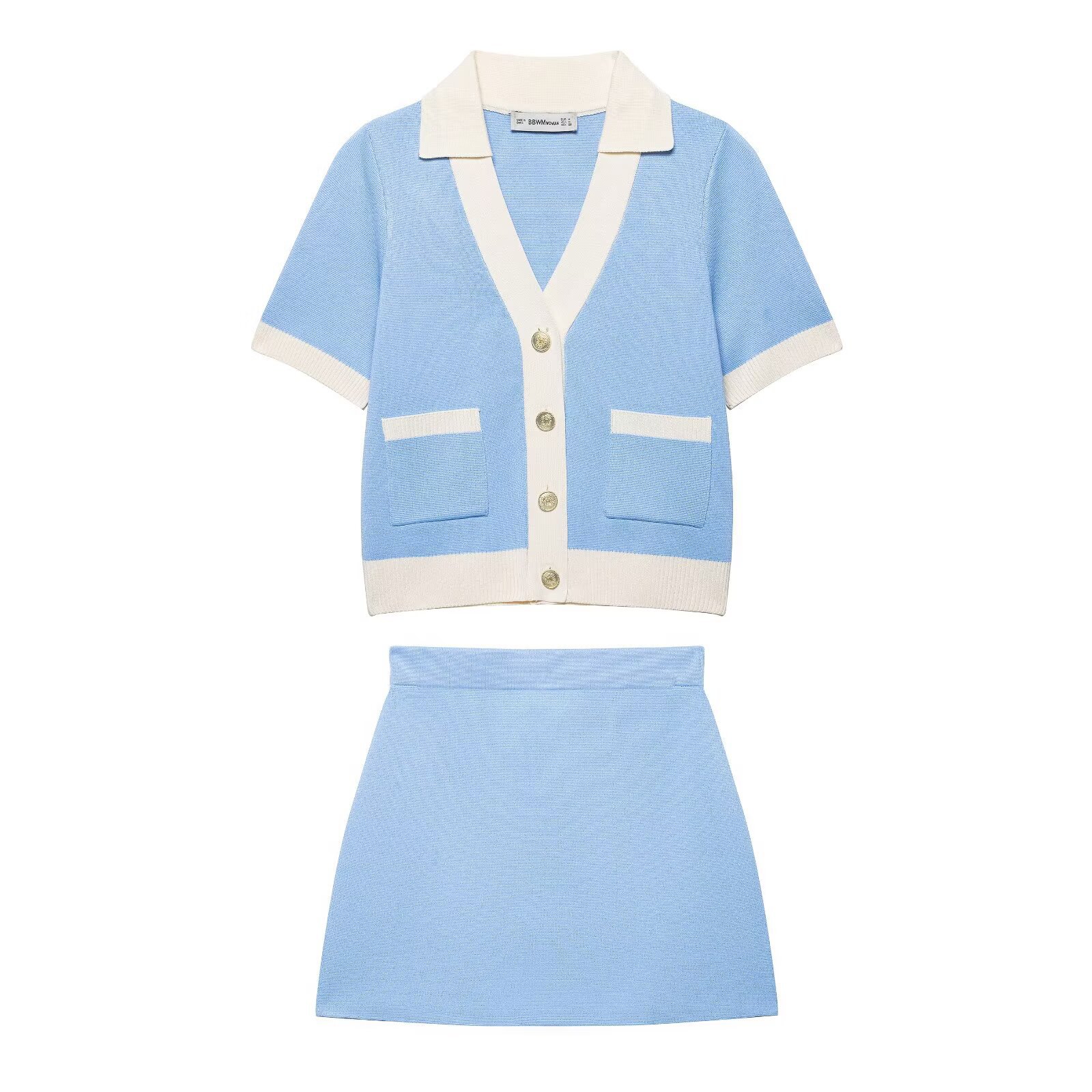 BB 유럽과 미국의 국경 간 여성 의류 도매 여성 반팔 니트 자켓 하이 웨이스트 미니 스커트 캐주얼 세트스토어 가기