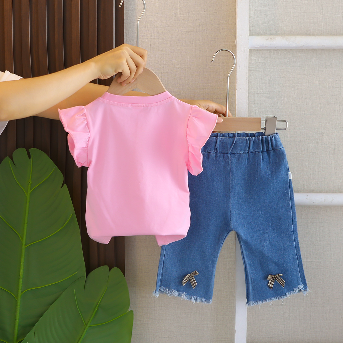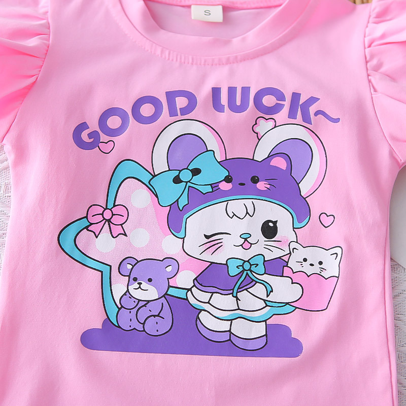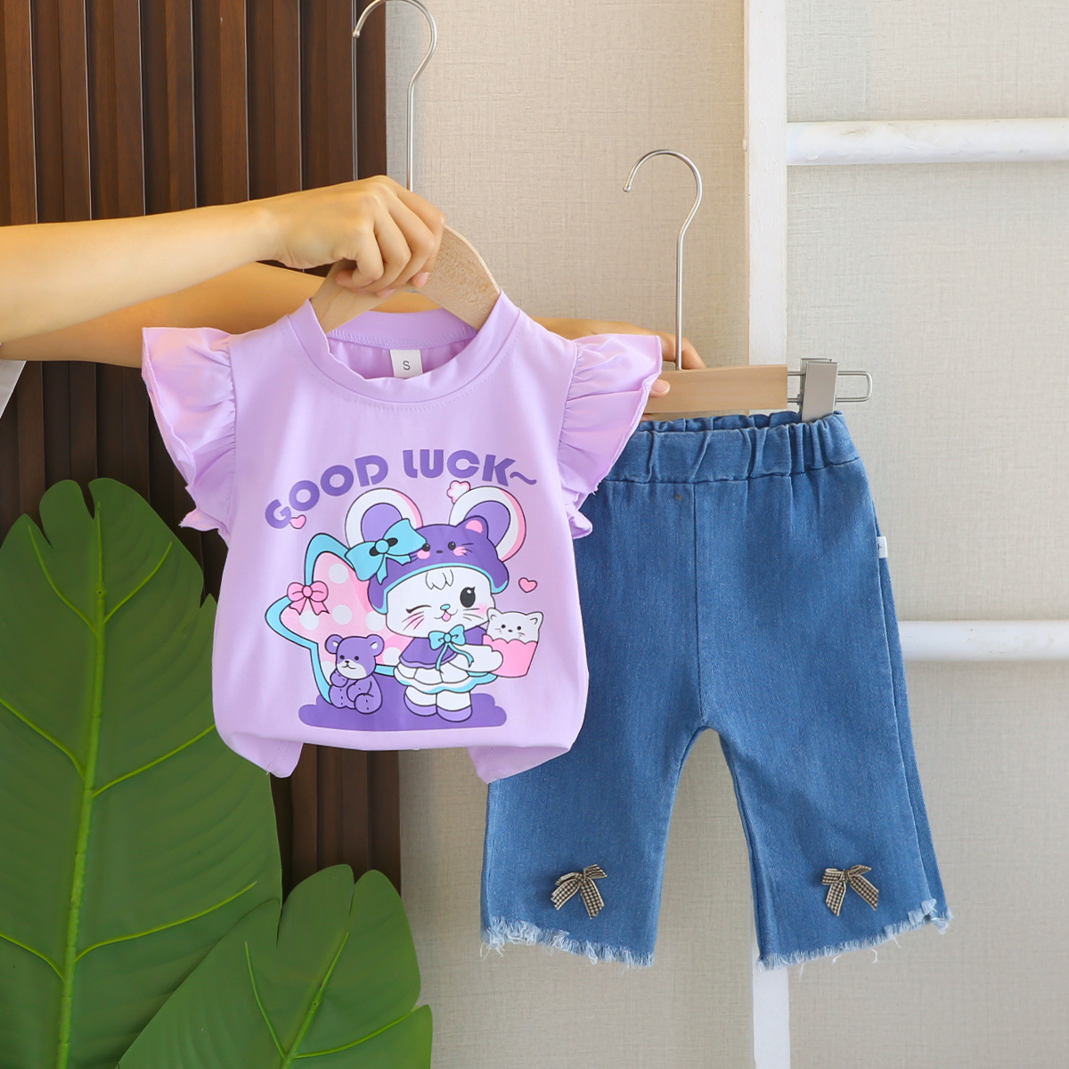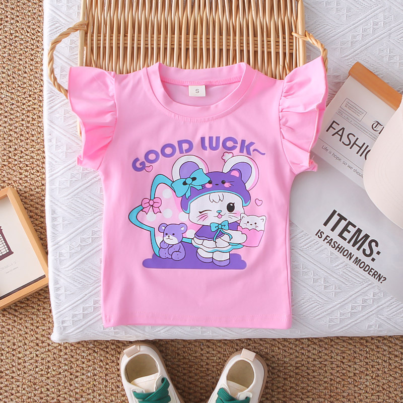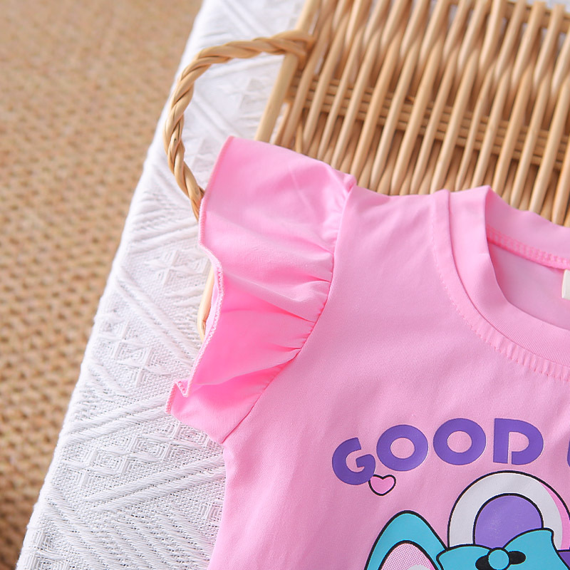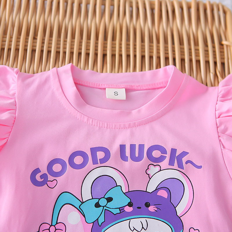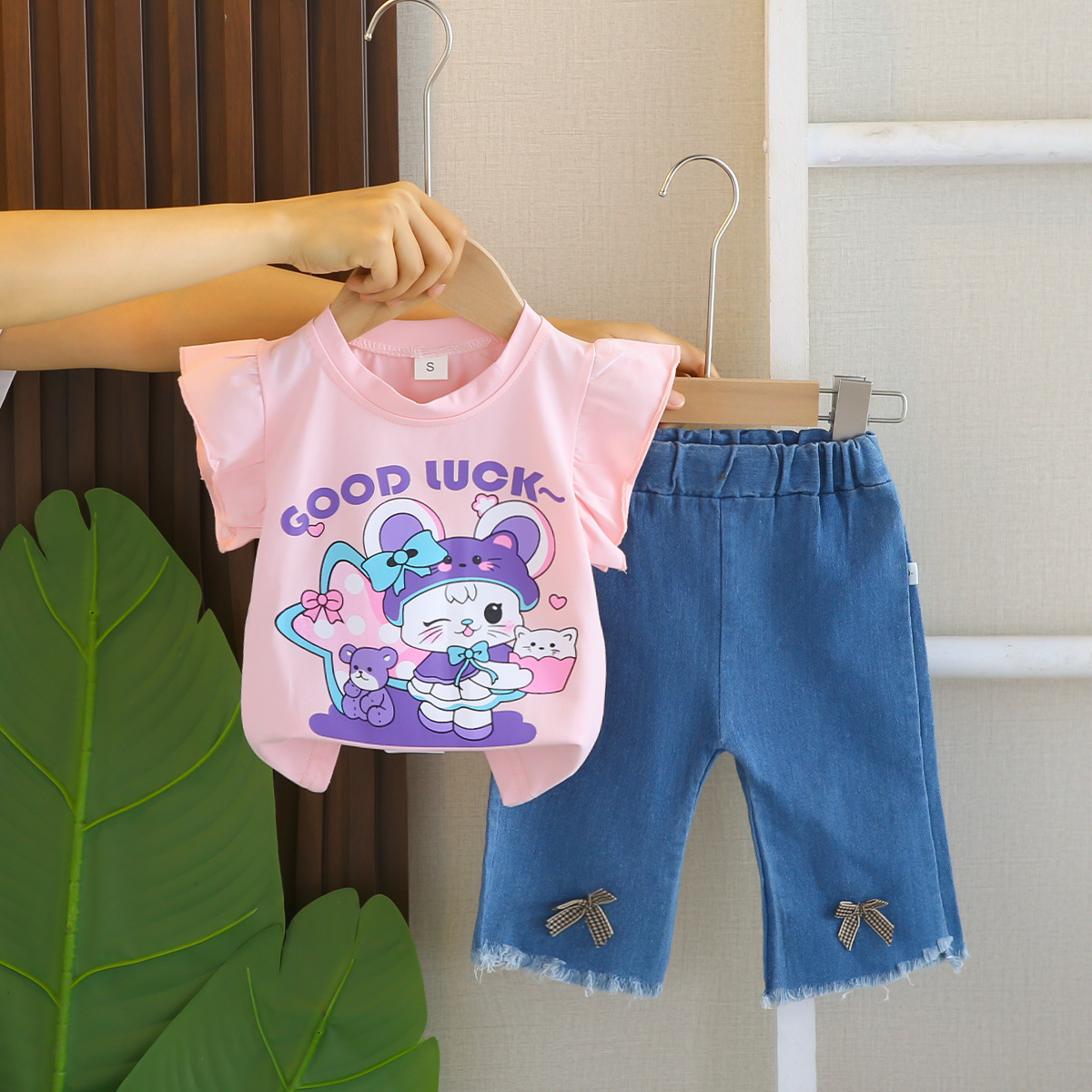여자 2025 패션 트렌드 새로운 정장 만화 반팔 여름 토끼 정장 어린이 티셔츠 한국 스타일 코튼스토어 가기