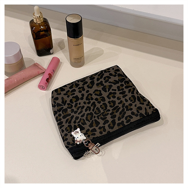 • 다크 레오파드 프린트 스트레이트 백(펜던트 포함)