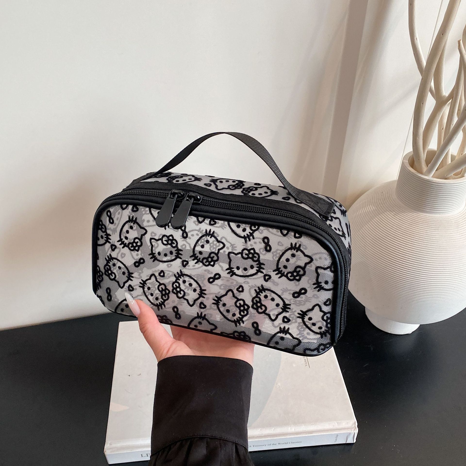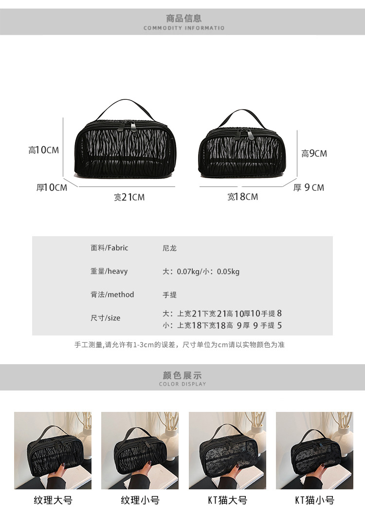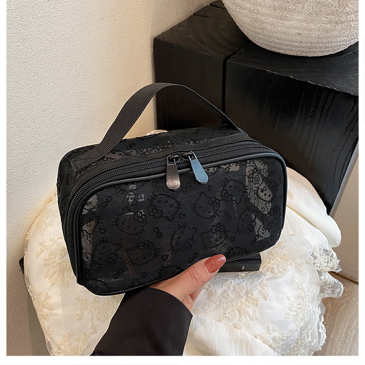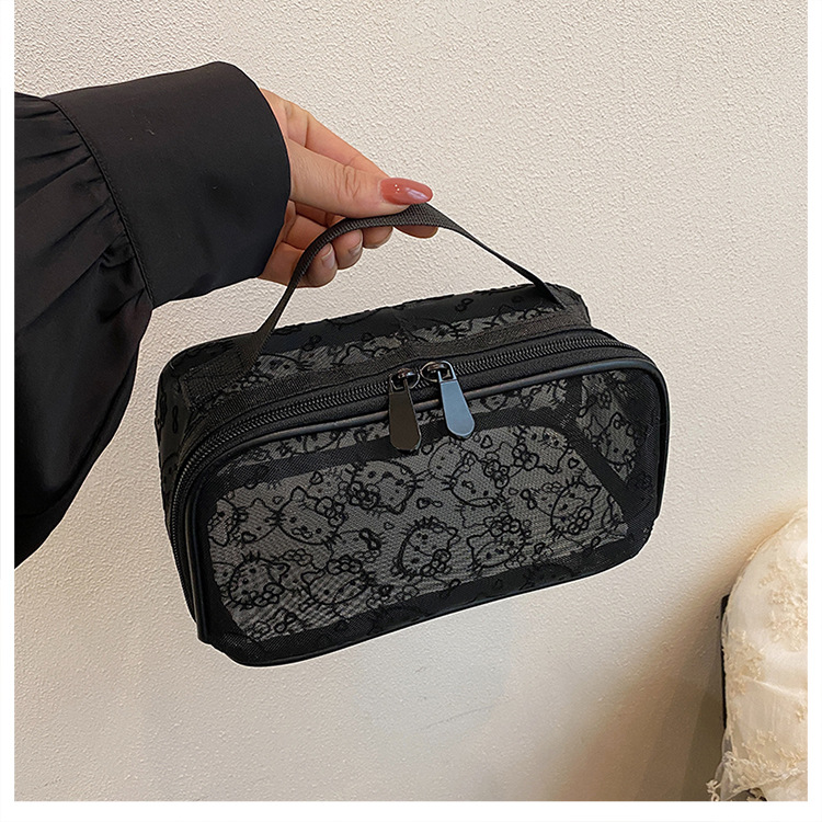 인터넷 연예인의 새로운 귀여운 메쉬 키티 대용량 화장품 가방 고가치 여행 다기능 세면 용품 보관 가방