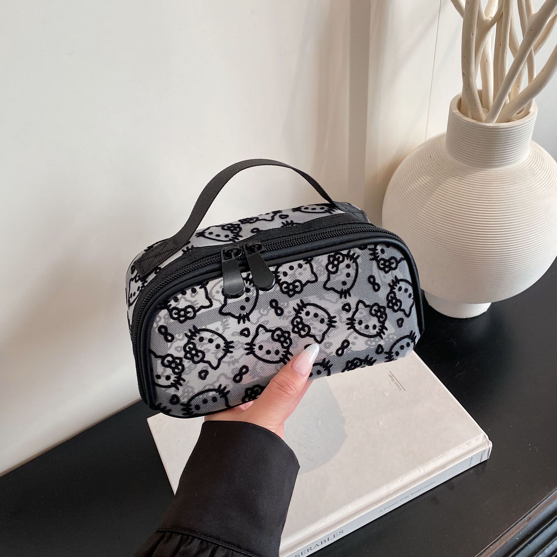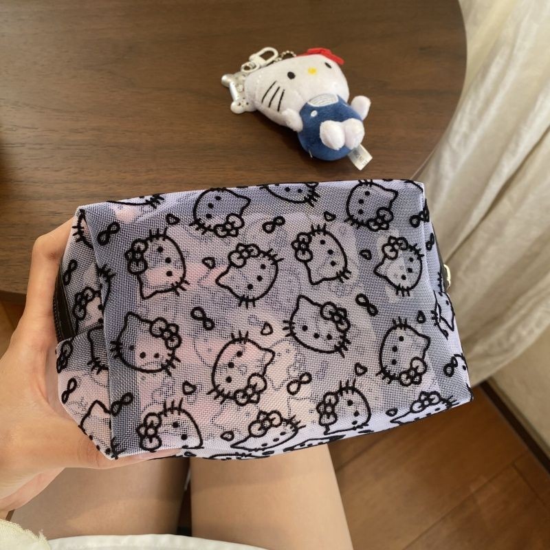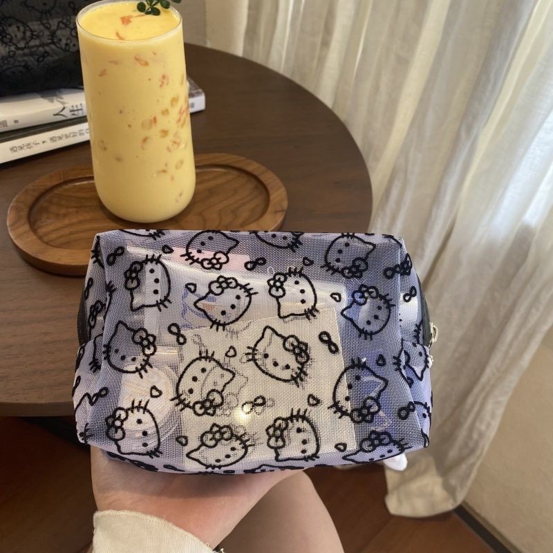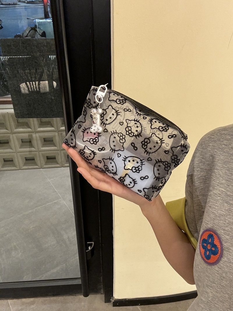 인터넷 연예인의 새로운 귀여운 메쉬 키티 대용량 화장품 가방 고가치 여행 다기능 세면 용품 보관 가방스토어 가기