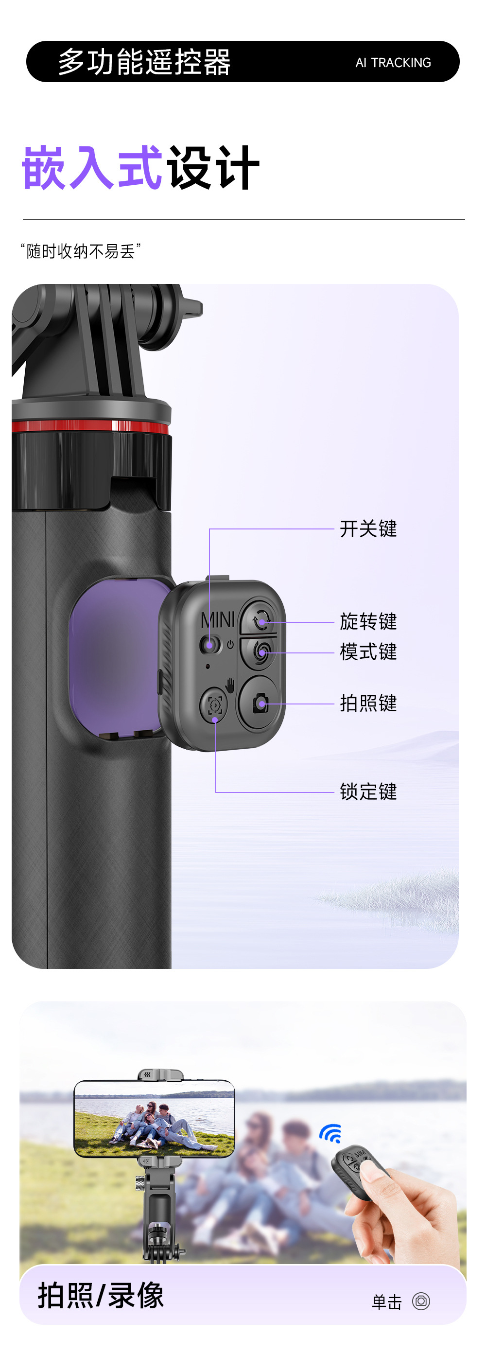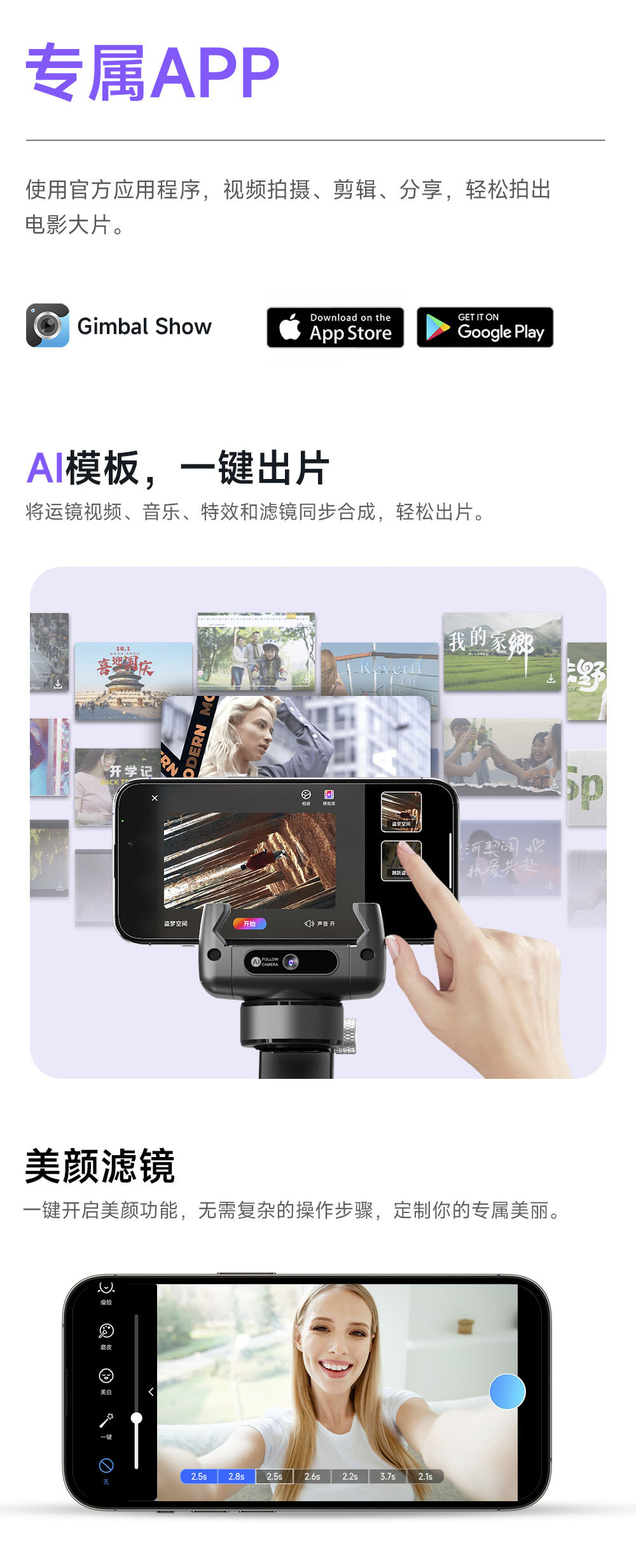 C22 핸드헬드 짐벌 안정기 AI 얼굴 자동 추적 방진 스탠드 브이로그 촬영 라이브 방송 셀카봉 NCC