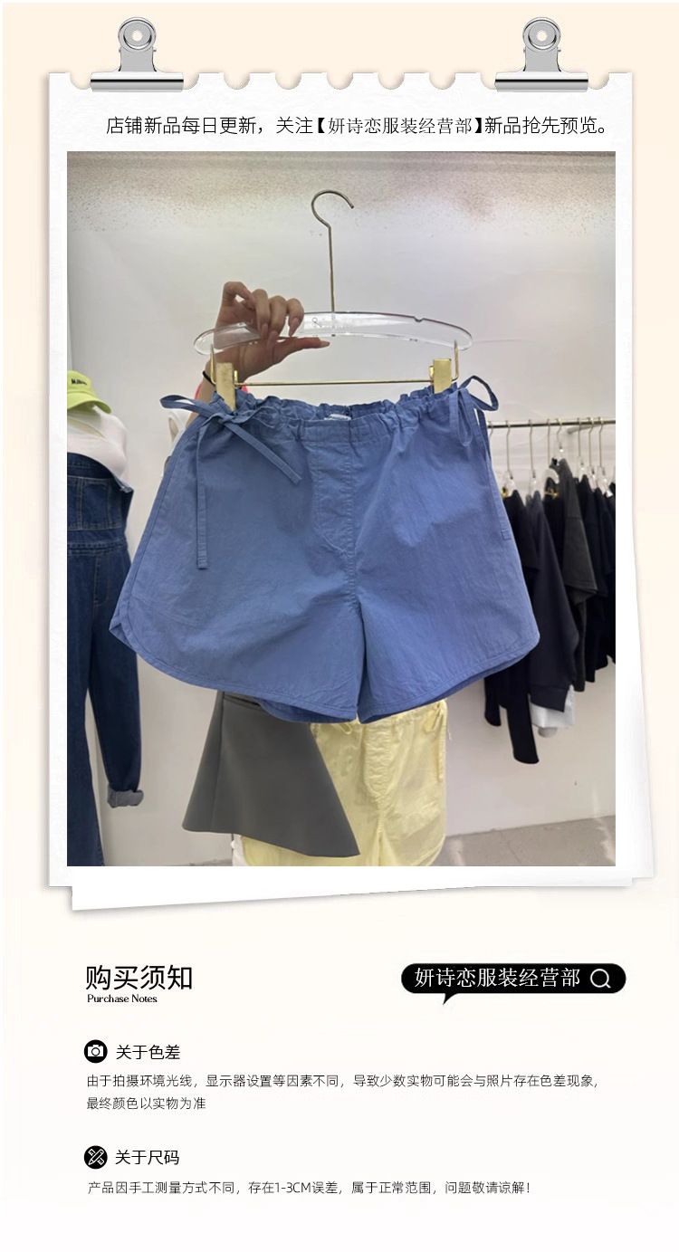 한국의 새로운 패션 다목적 하이 웨이스트 레이스 업 슬림 캐주얼 루즈 반바지 여성 여름 신축성있는 허리 스포츠 반바지스토어 가기