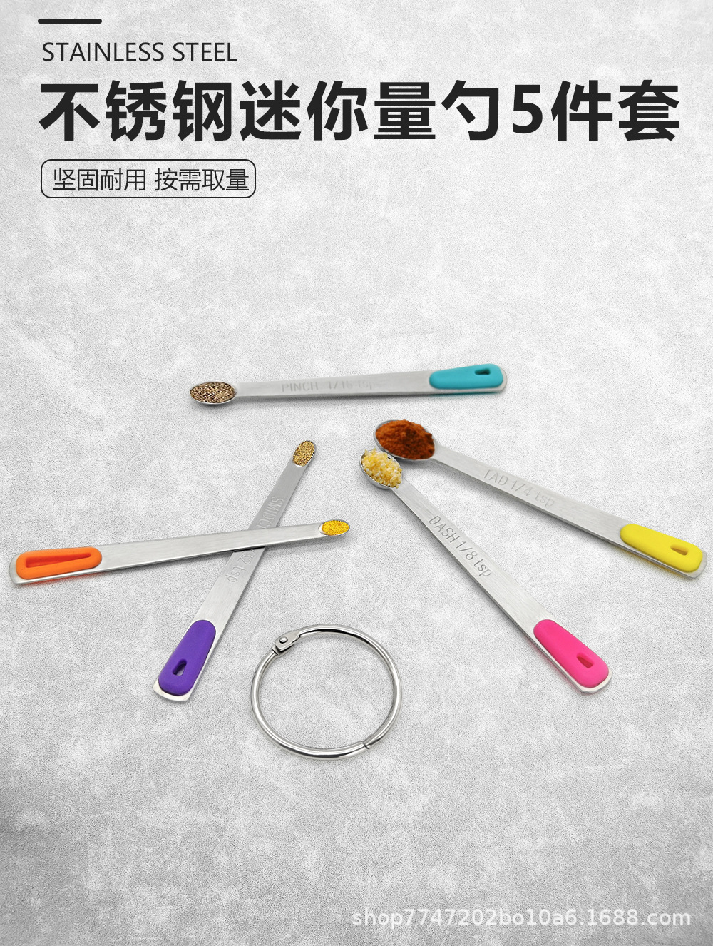 실리콘 미니 계량 스푼 5피스 세트 스케일 스테인레스 스틸 계량 스푼 주방 조미료 계량 스푼 베이킹 도구 재고 있음