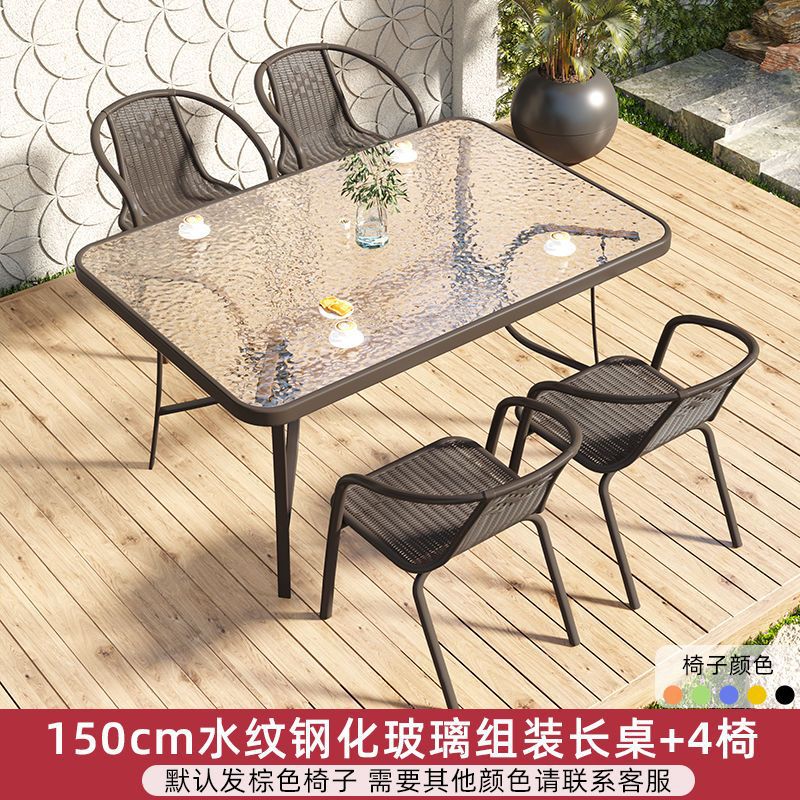 • 150cm 물무늬 강화유리 조립식 긴 테이블 + 의자 4개