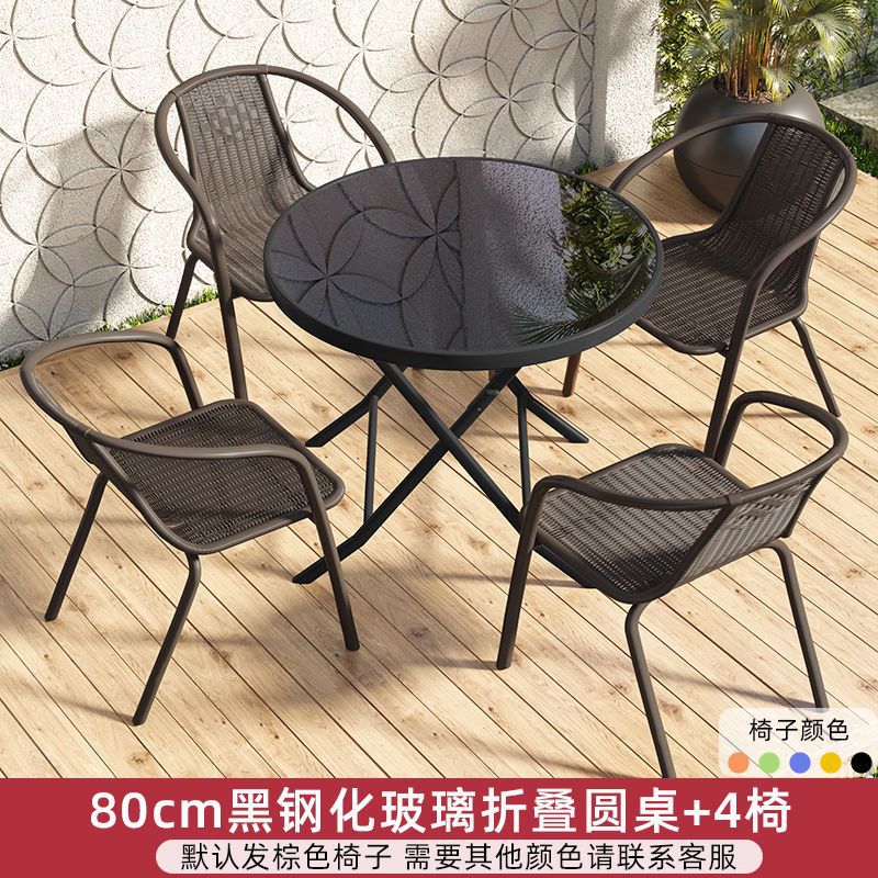 • 80cm 블랙 강화유리 접이식 원형 테이블 + 의자 4개