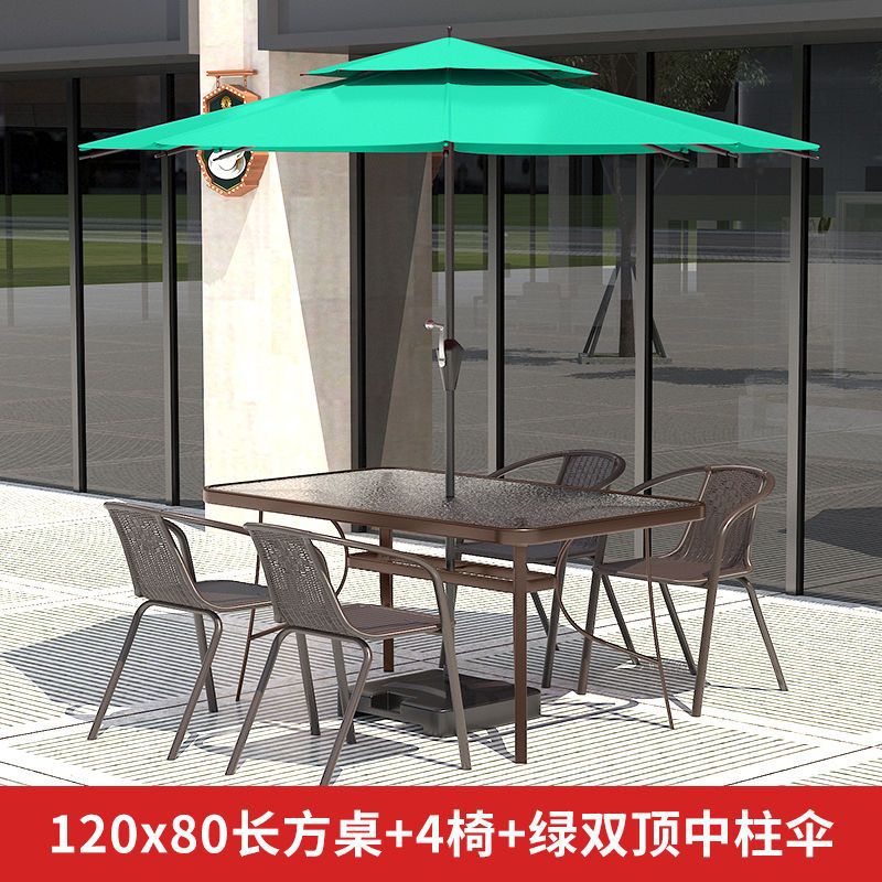 • 120x80 직사각형 테이블 + 의자 4개 + 이중 상단 중앙 기둥 우산