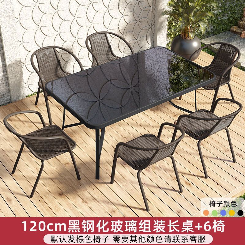 • 120cm 블랙 강화유리 조립식 긴 테이블 + 의자 6개