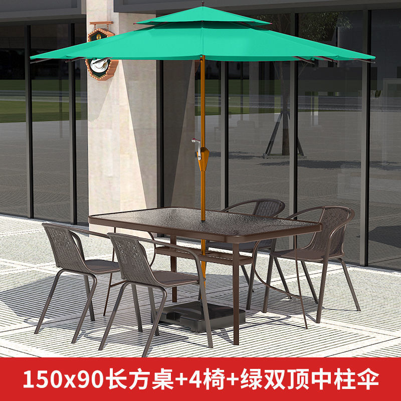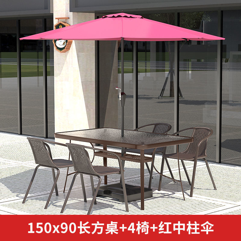 • 150x90 직사각형 테이블 + 의자 4개 + 이중 상단 중앙 기둥 우산
