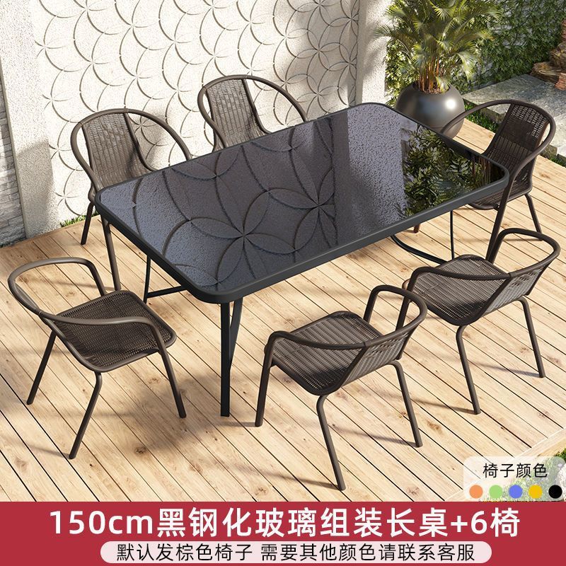 • 150cm 블랙 강화유리 조립식 긴 테이블 + 의자 6개