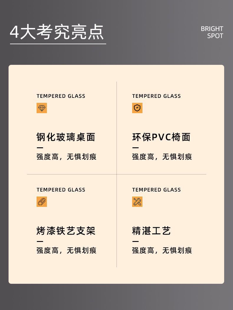 • 120cm 블랙 강화유리 조립식 긴 테이블 + 의자 4개