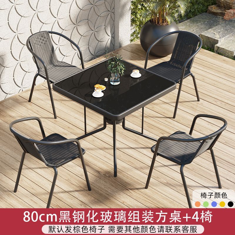 • 80cm 블랙 강화유리 조립 사각 테이블 + 의자 4개