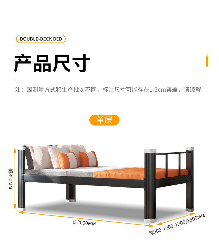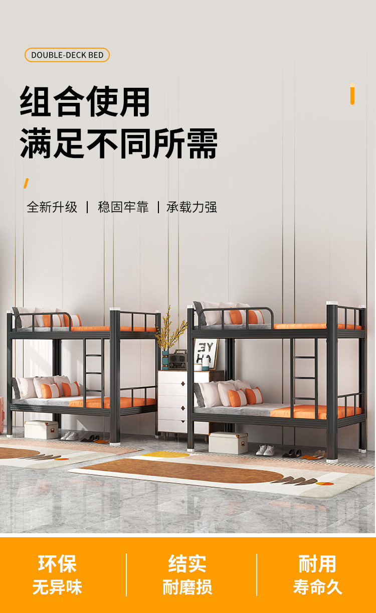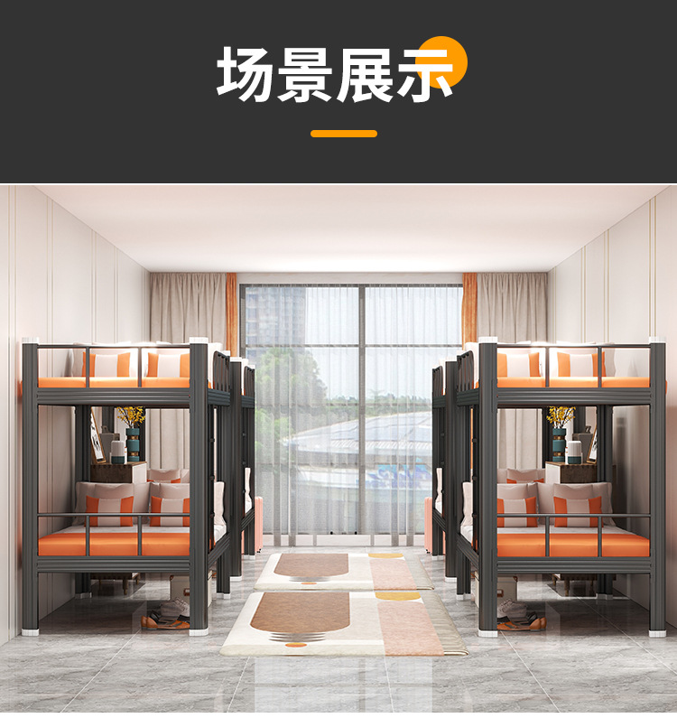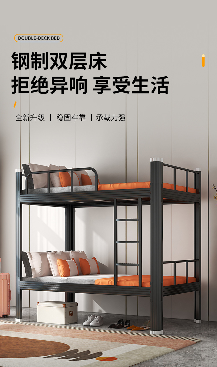 이층 철제 침대 이층 침대 아파트 스테인레스 스틸 철제 사각 튜브 침대 학교 기숙사 직원 이층 침대 건설 현장 침대