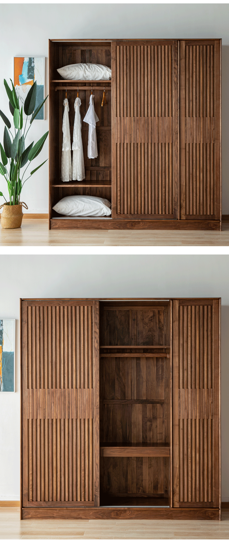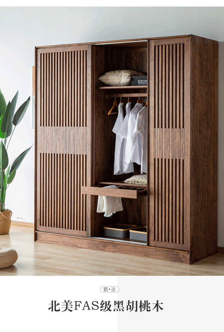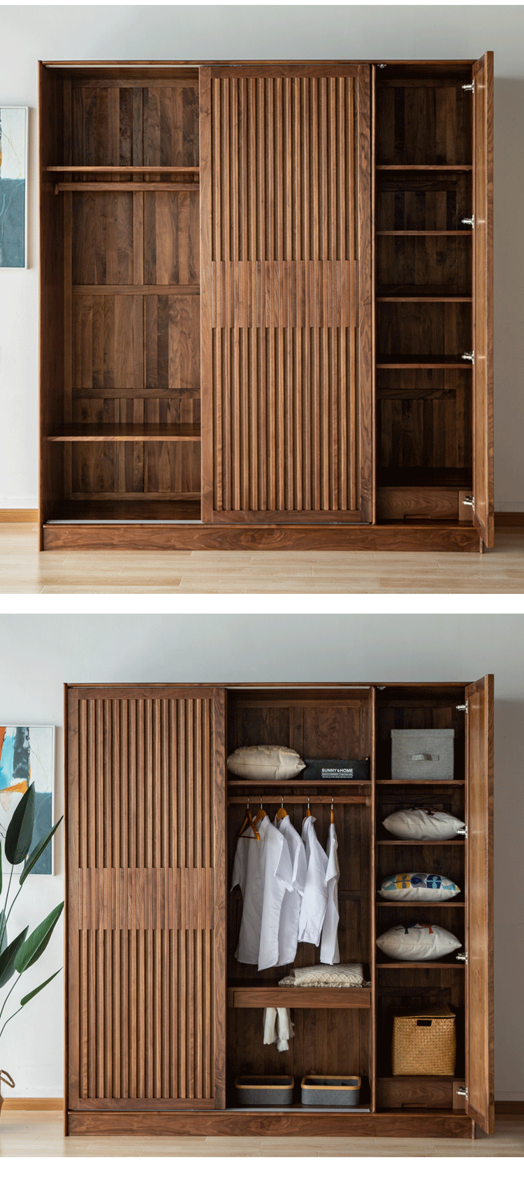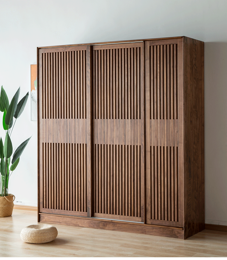 북미 검은 호두 일본식 단단한 나무 그릴 슬라이딩 도어 옷장 간단한 현대 체리 나무 오크 통나무 옷장