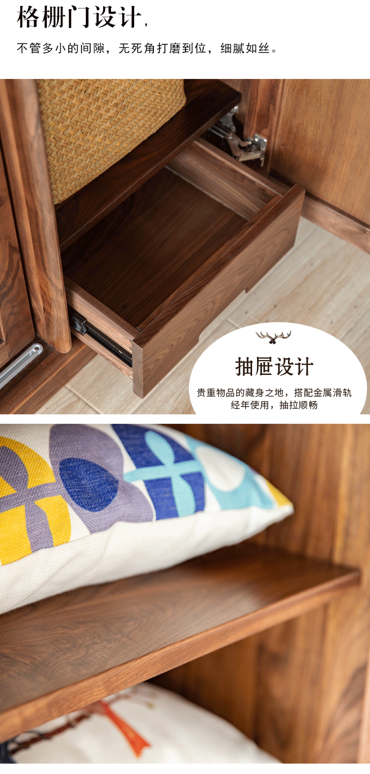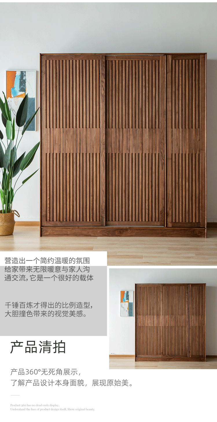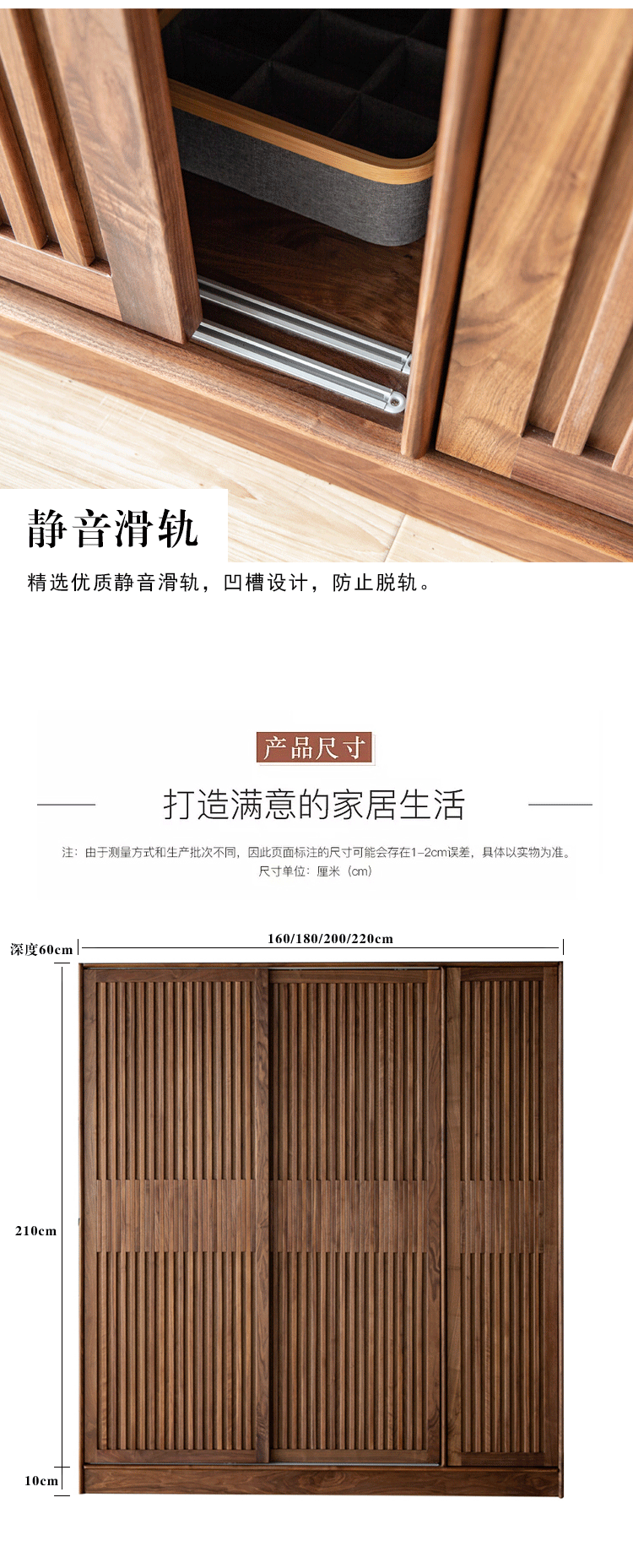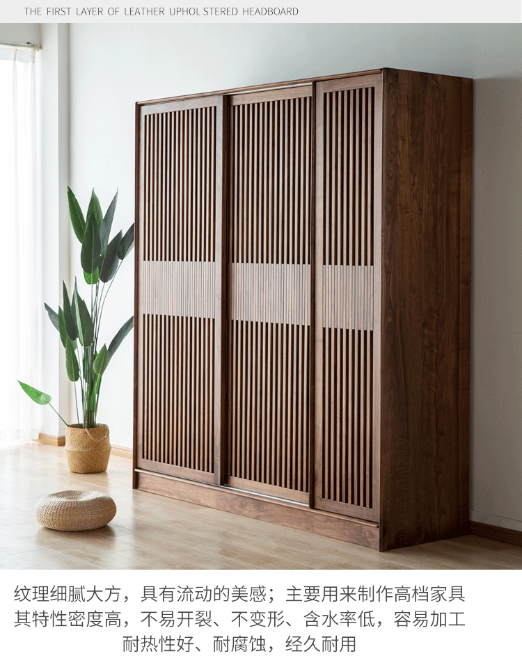 북미 검은 호두 일본식 단단한 나무 그릴 슬라이딩 도어 옷장 간단한 현대 체리 나무 오크 통나무 옷장