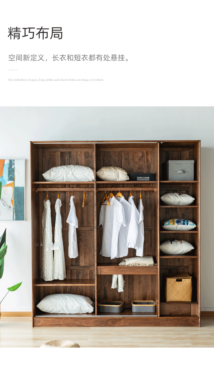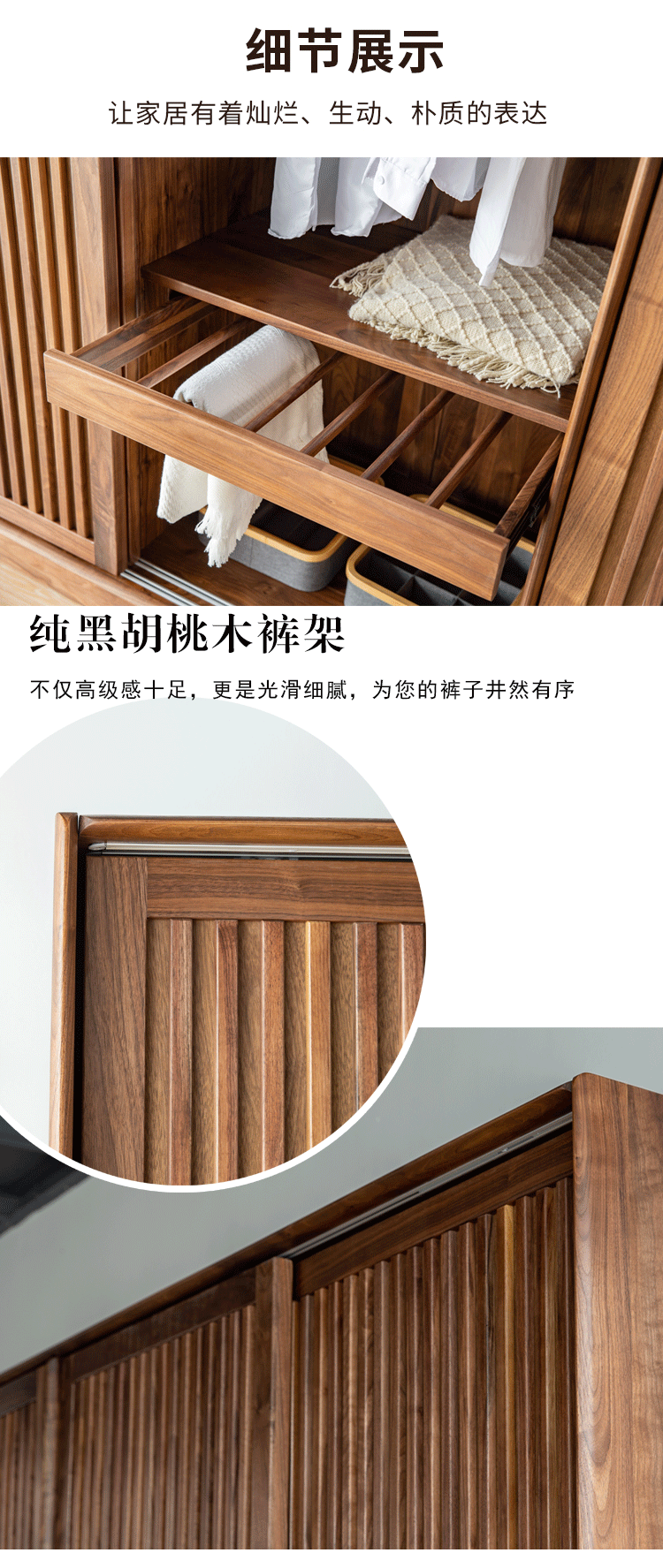 북미 검은 호두 일본식 단단한 나무 그릴 슬라이딩 도어 옷장 간단한 현대 체리 나무 오크 통나무 옷장스토어 가기