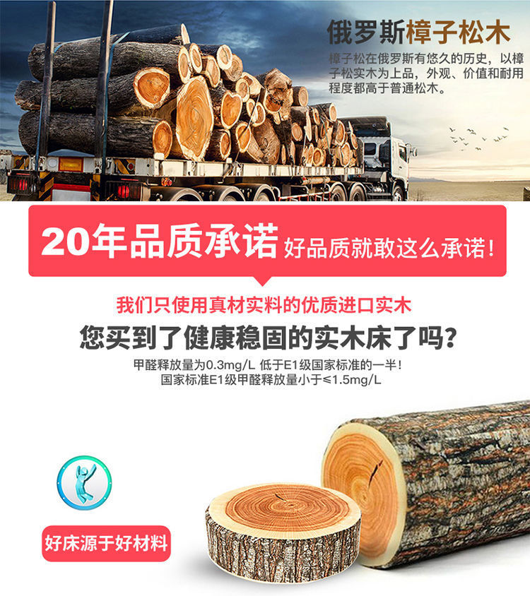 • 난간 침대 160*70*60 소나무 원목 무도장