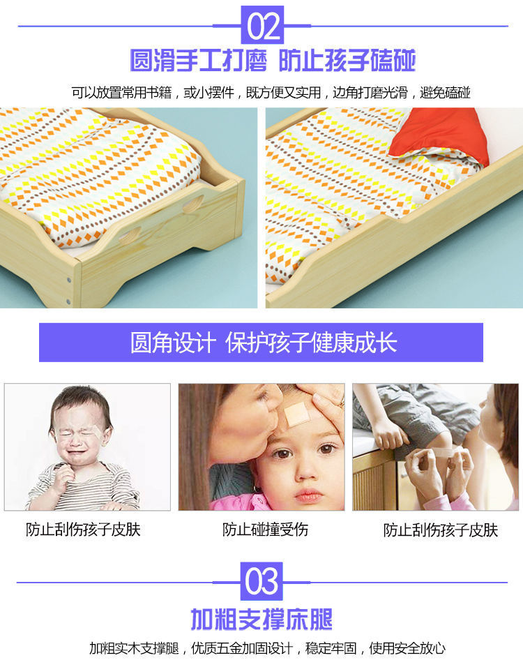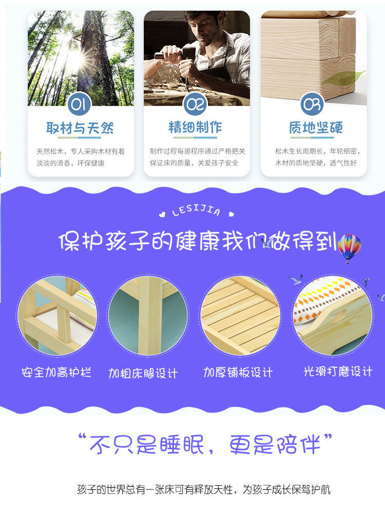 • 난간 침대 150*70*60 소나무 원목 무도장