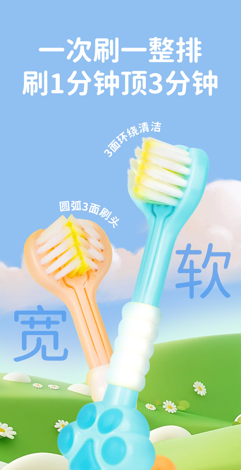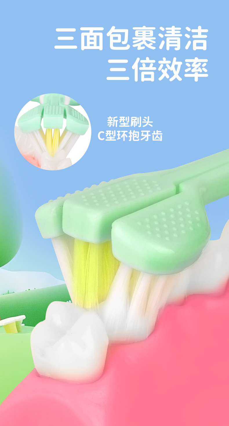 어린이용 칫솔 부드러운 강모 충치 방지 3~6~12세 3빵 감싸고 딥클렌징 아기 치아교정기 어린이용 3D칫솔