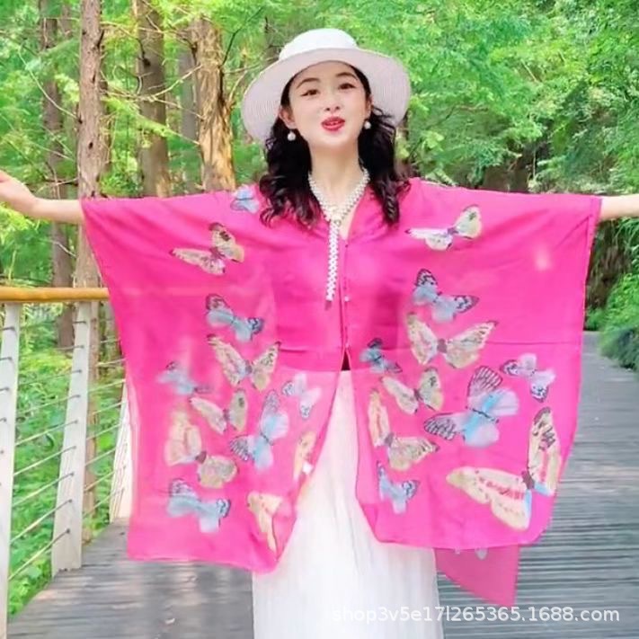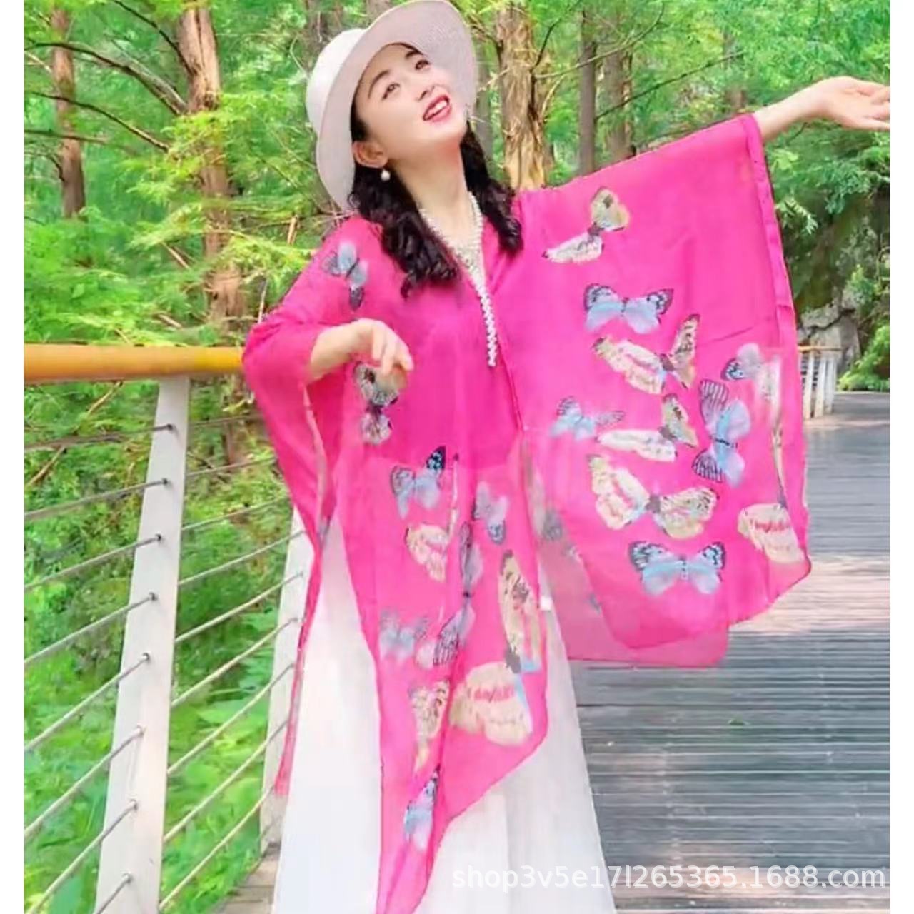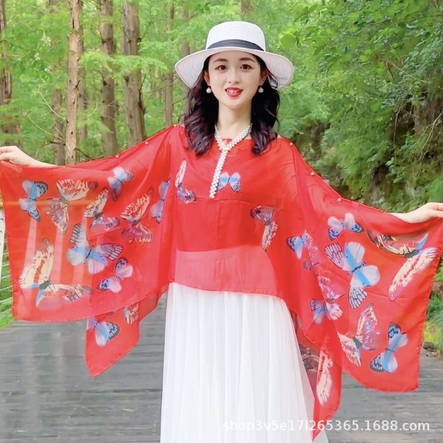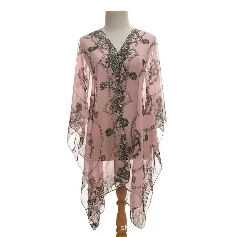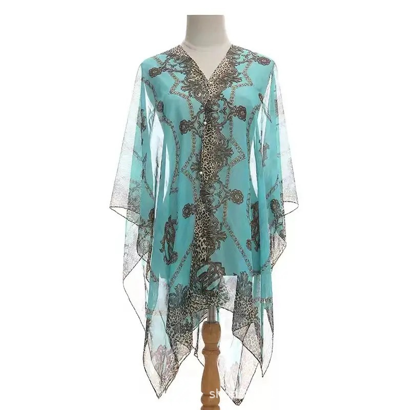 여름 핫 세일 풀오버 실크 스카프 도매 여성 쉬폰 어머니 스타일 스퀘어 댄스 프린트 하이 엔드 외국 스타일 자외선 차단제 목도리