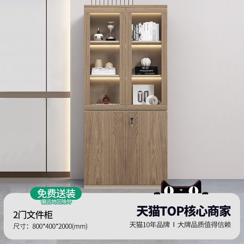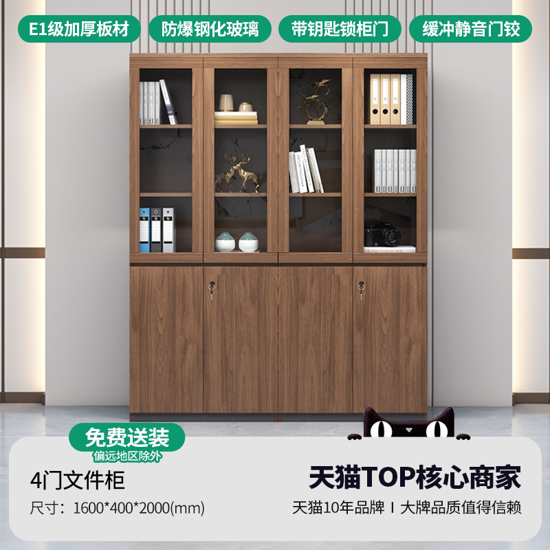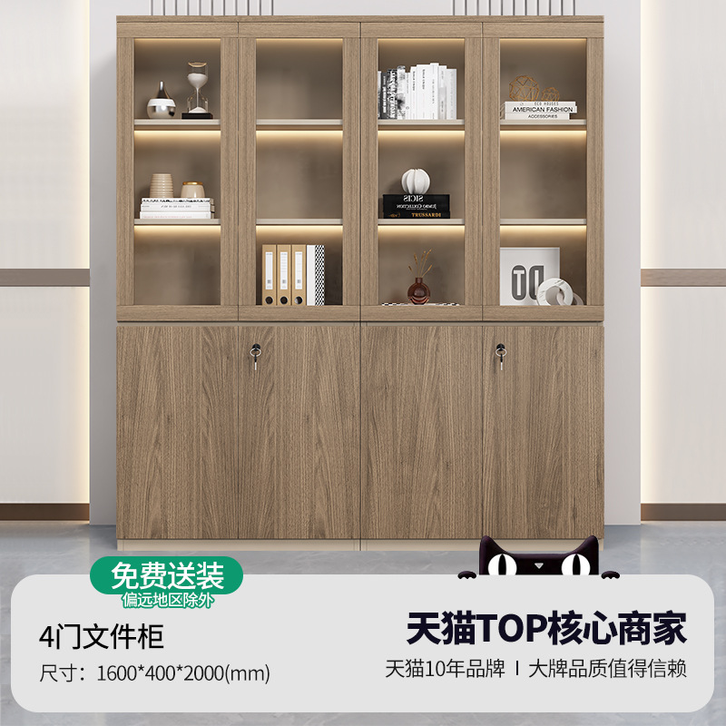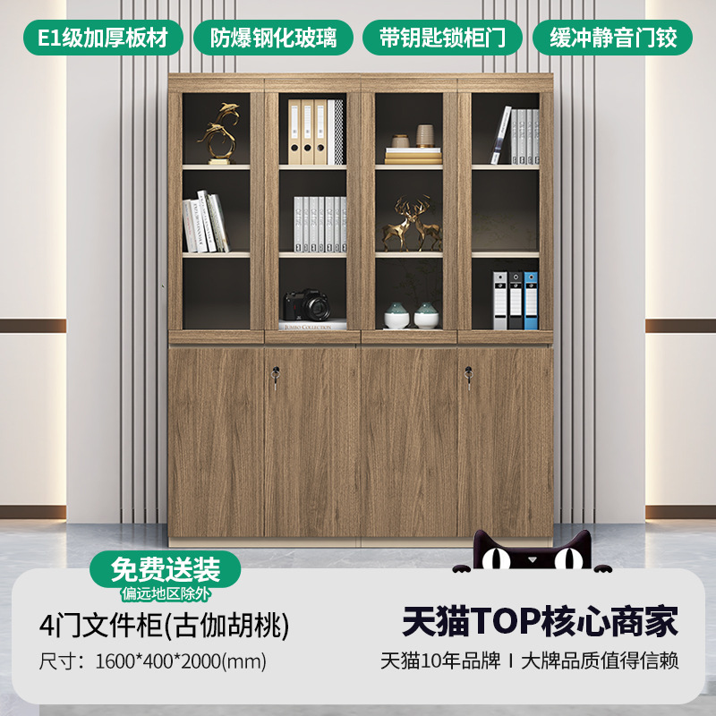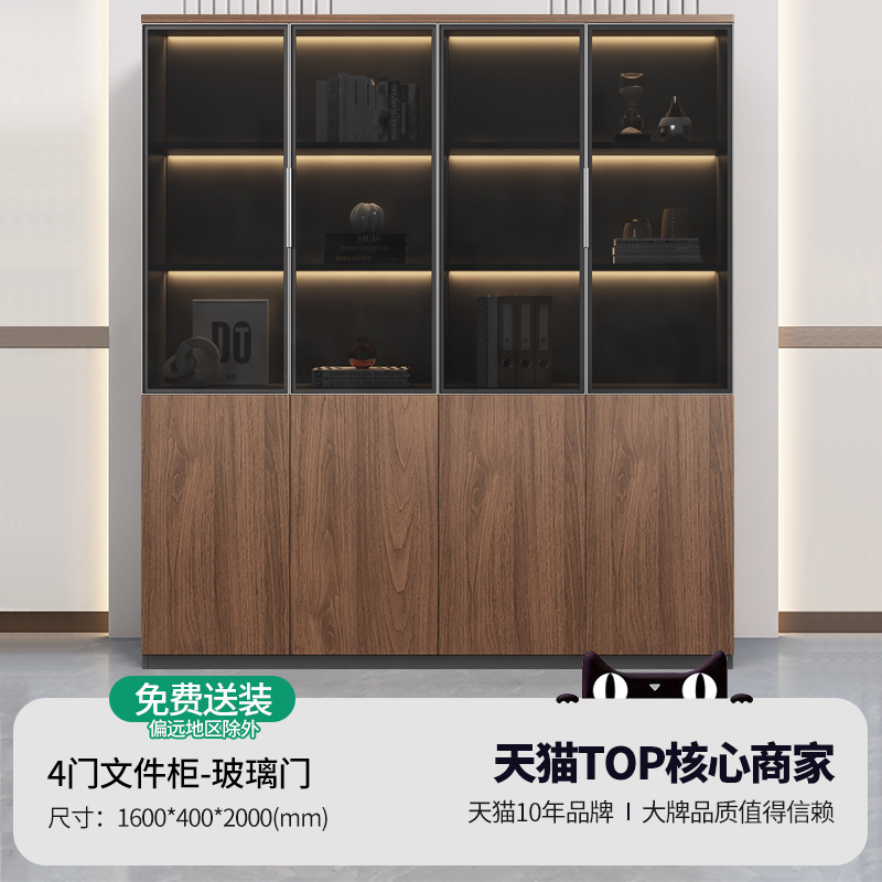 • [패키지 포함] 4도어 유리 파일 캐비닛 라이트 스트립(구자 호두 + 테크니컬 그레이)