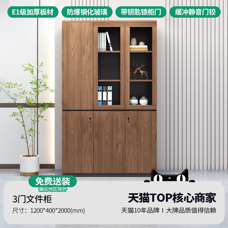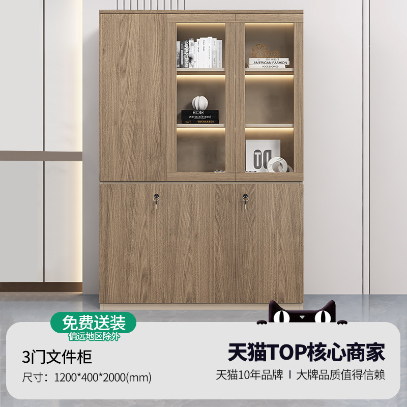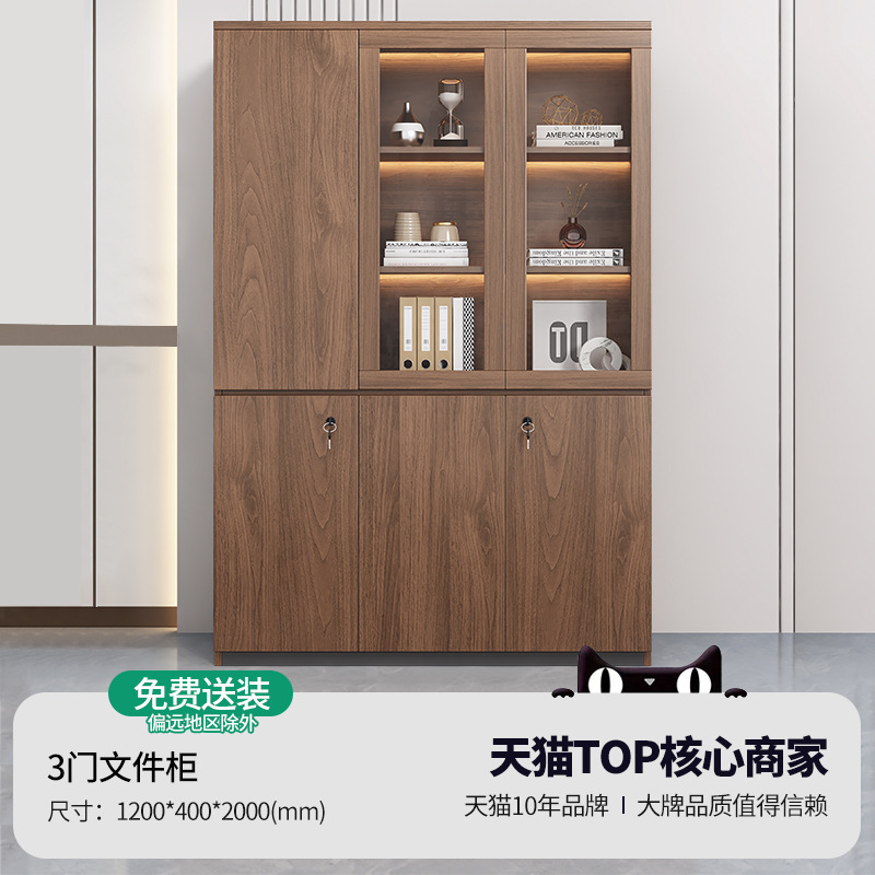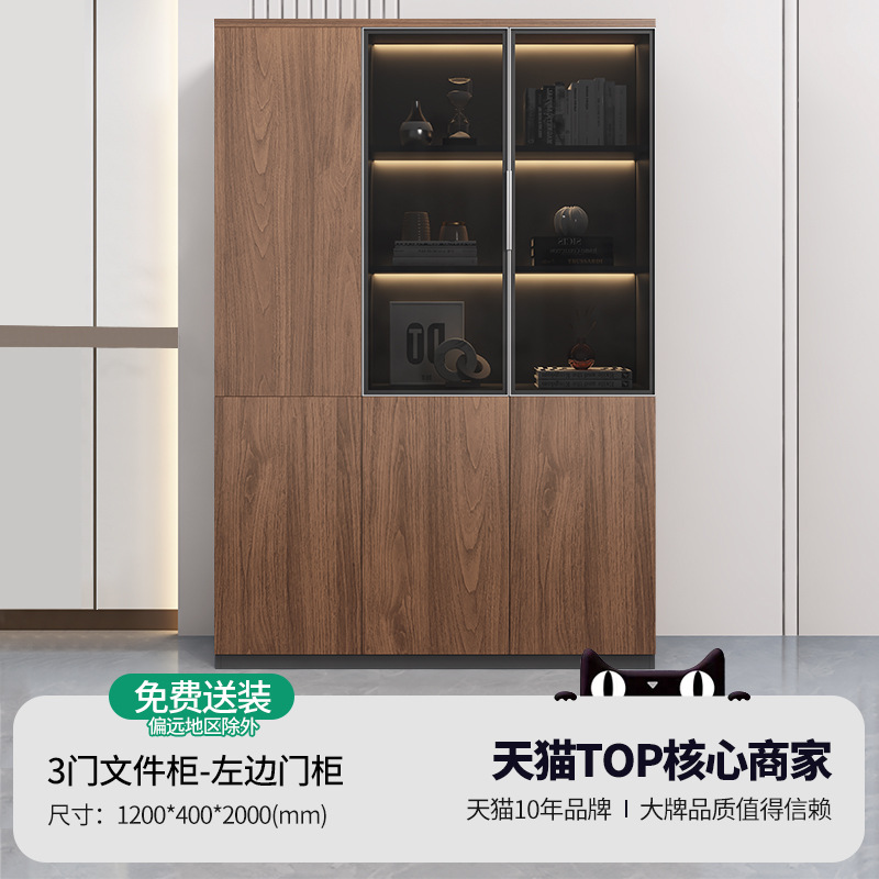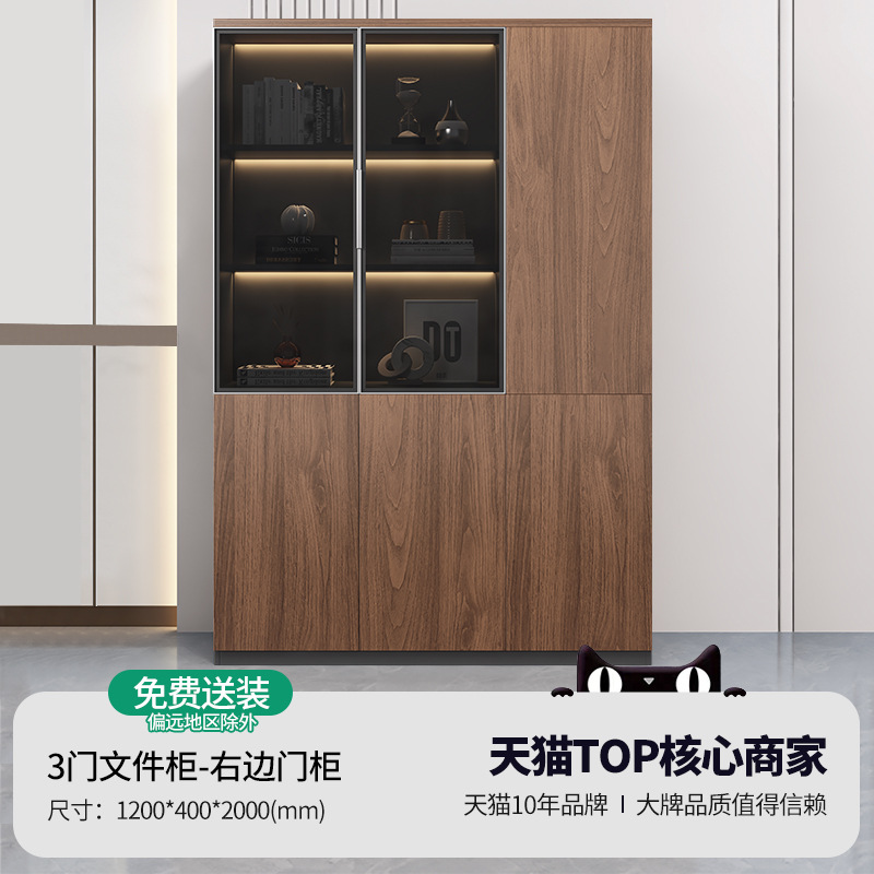 • 3도어 유리 파일 캐비닛 조명(구자 호두 + 테크니컬 그레이)