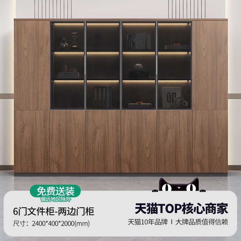• [패키지] 6도어 유리 파일 캐비닛 라이트 스트립(구지아 월넛 + 테크니컬 그레이)