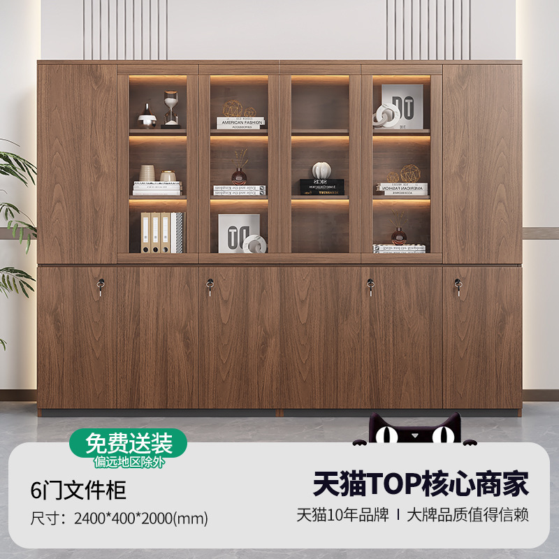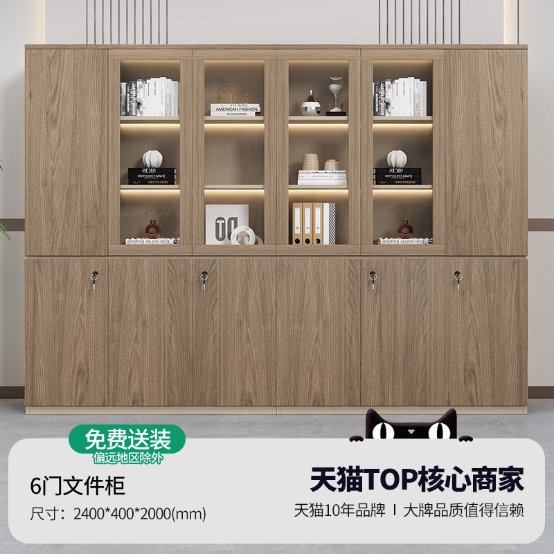 • [패키지] 6도어 유리 파일 캐비닛 라이트 스트립(아프리카 호두 + 아이언 그레이)