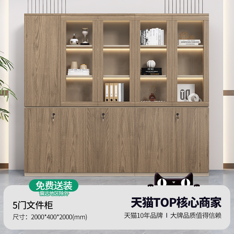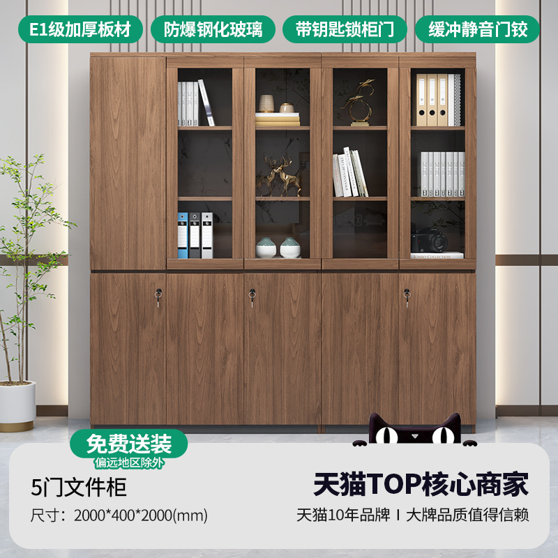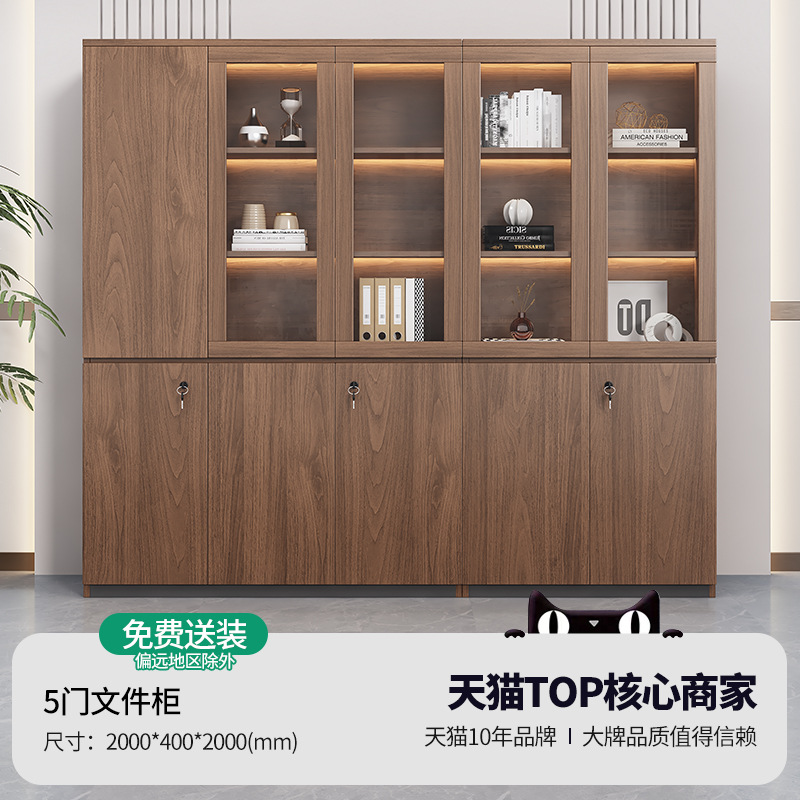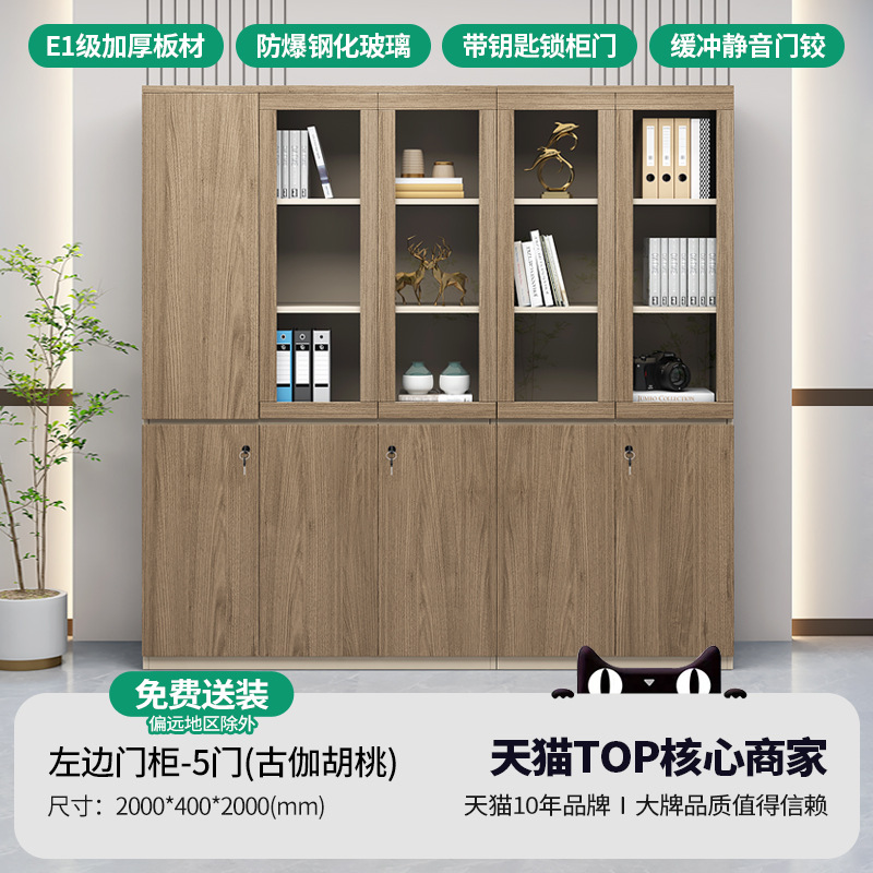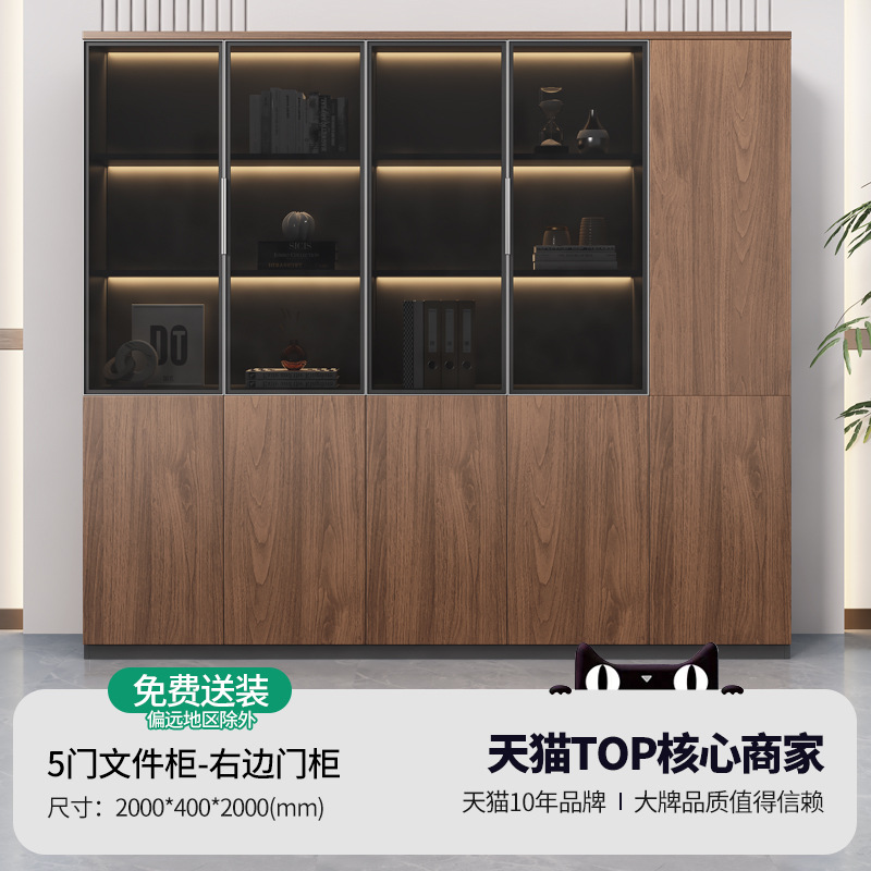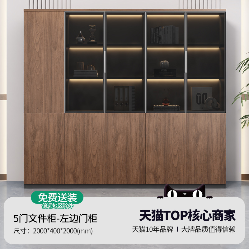 • [패키지 포함] 5도어 유리 파일 캐비닛 라이트 스트립(구지아 월넛 + 테크니컬 그레이)