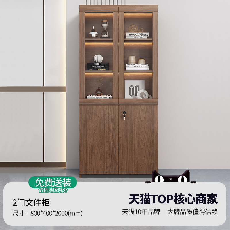 • 2도어 유리 파일 캐비닛 조명(아프리카 호두 + 아이언 그레이)
