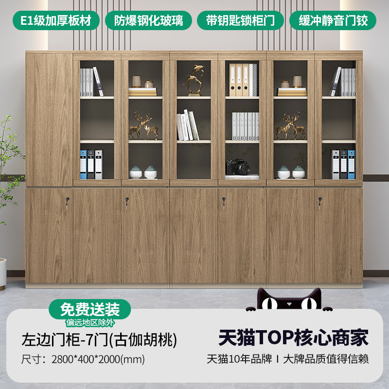 • [패키지] 7도어 유리파일캐비닛 - 왼쪽 도어캐비닛 (구자월넛+테크놀러지그레이)