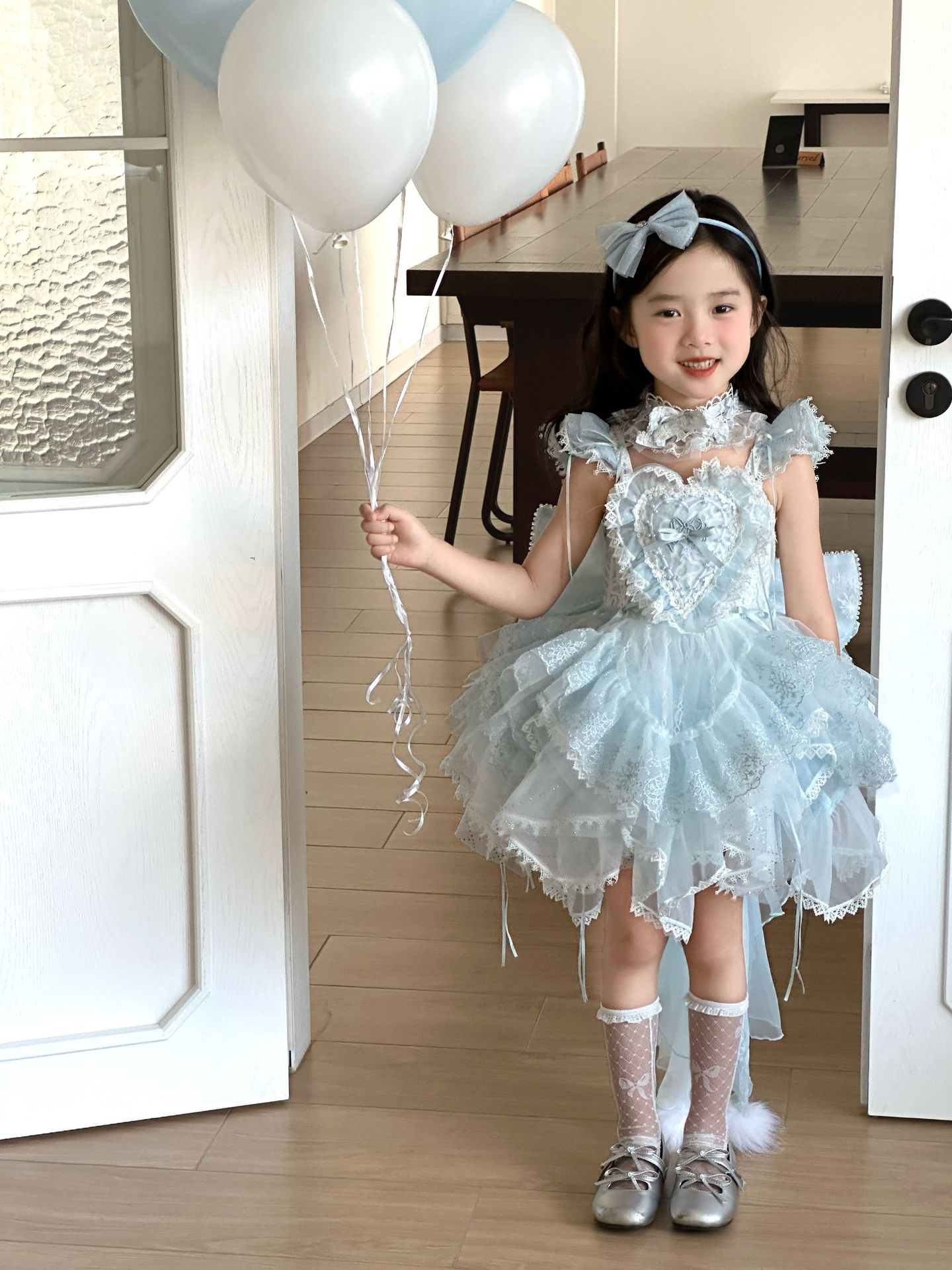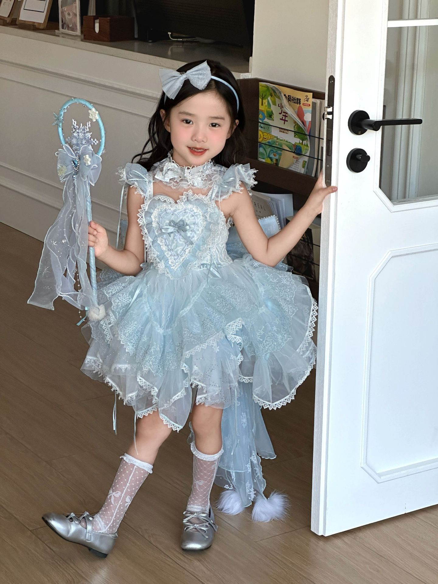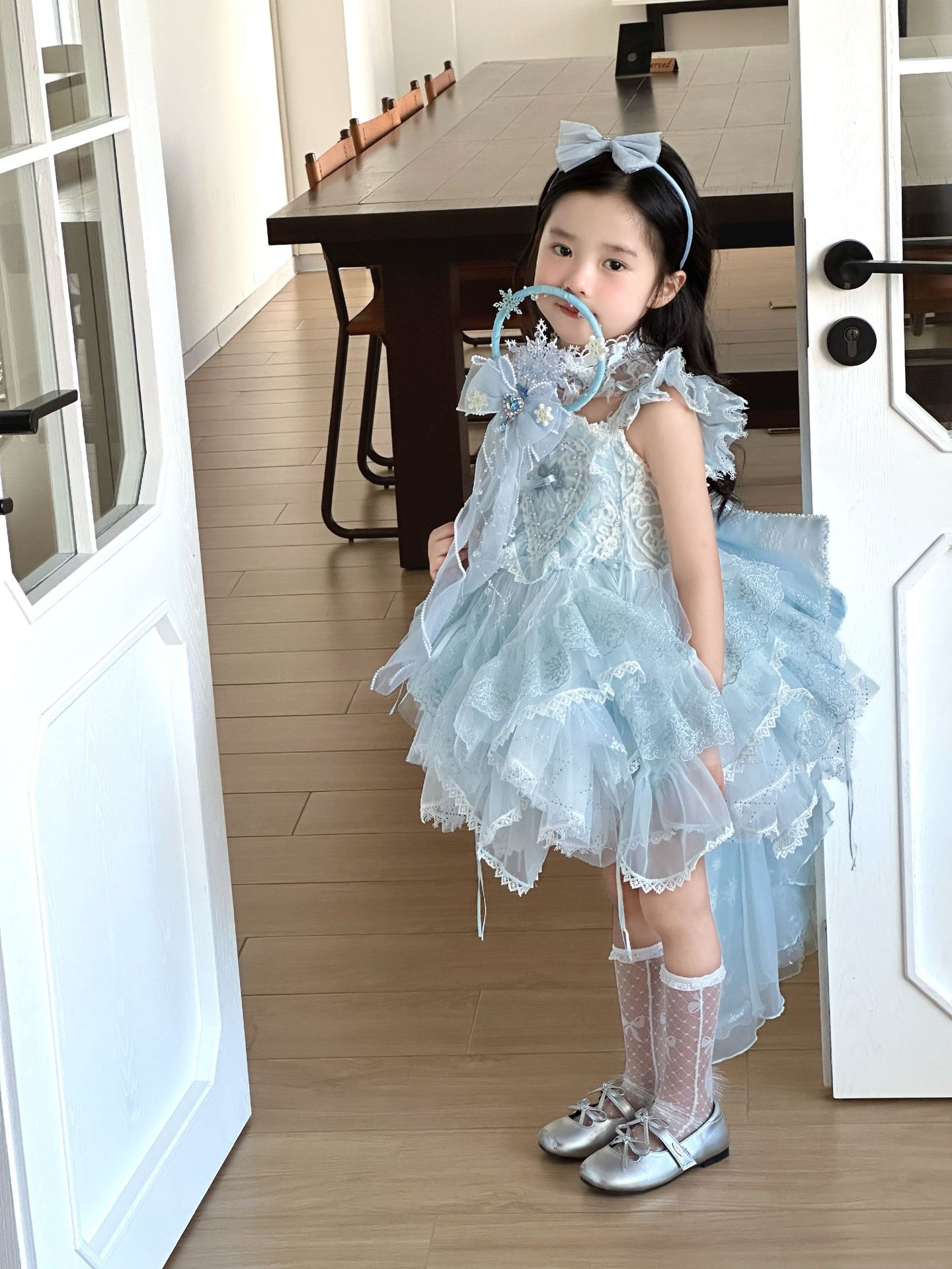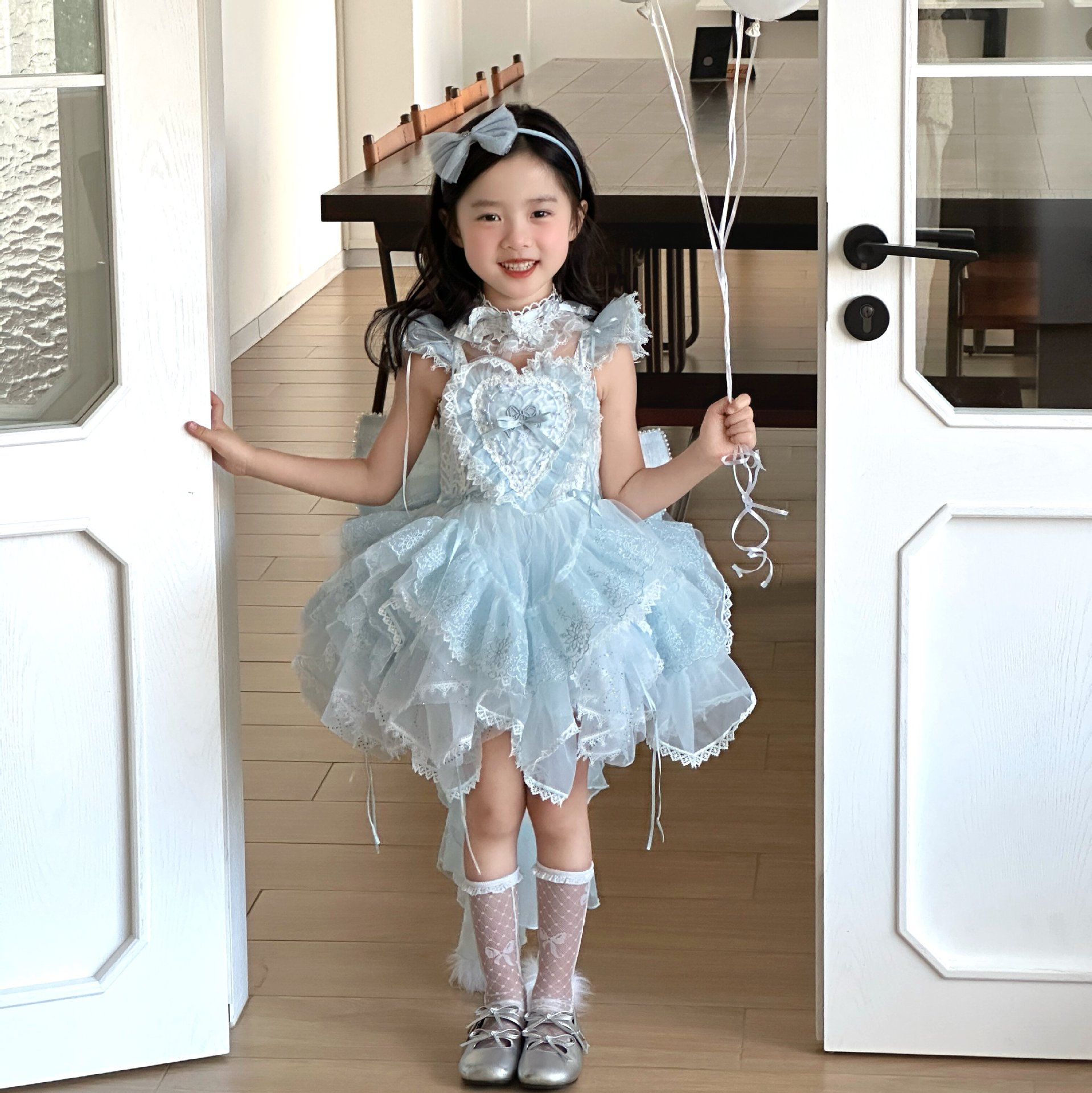 엘사 공주 드레스 소녀 로리타 드레스 2025 새로운 어린이 생일 드레스 퍼프 거즈 드레스 의상