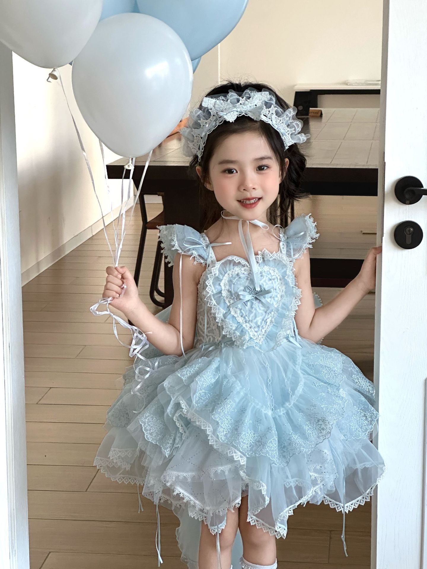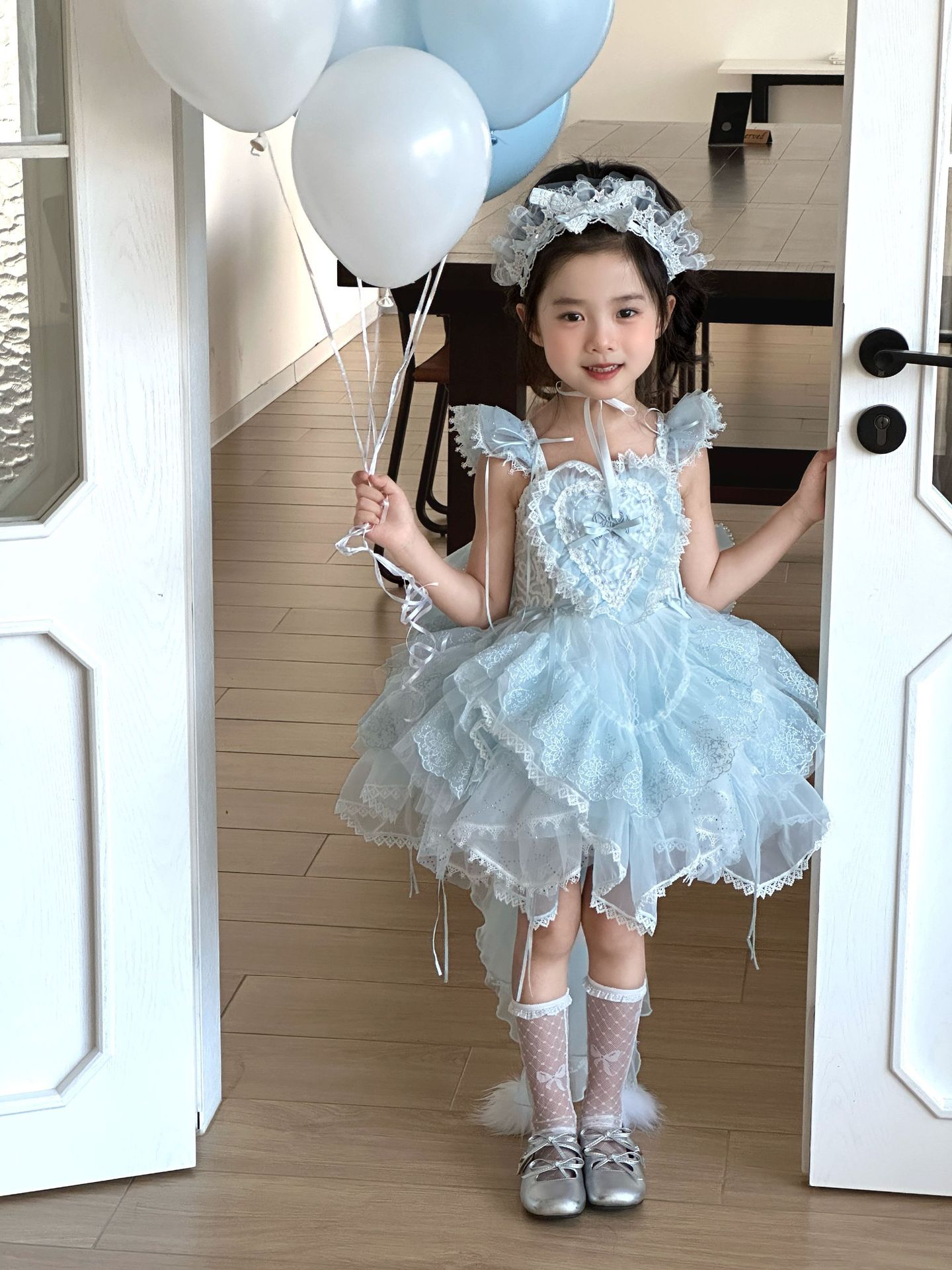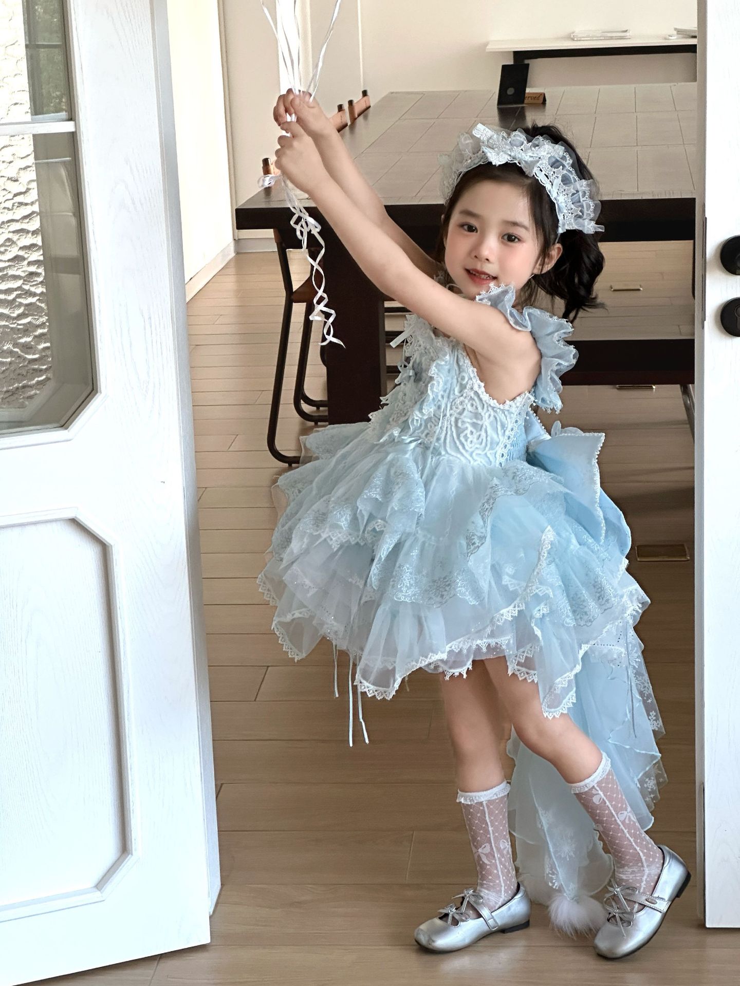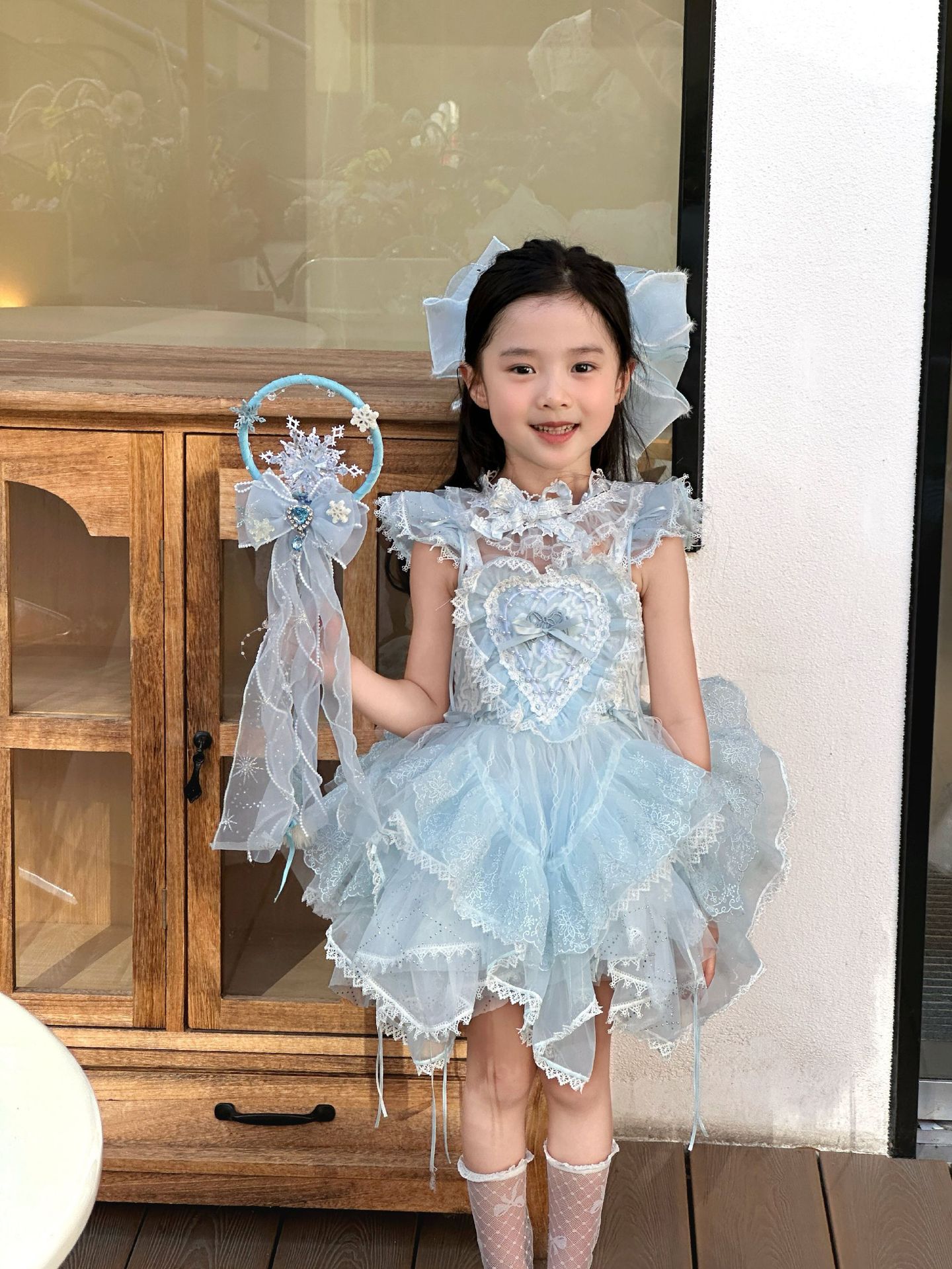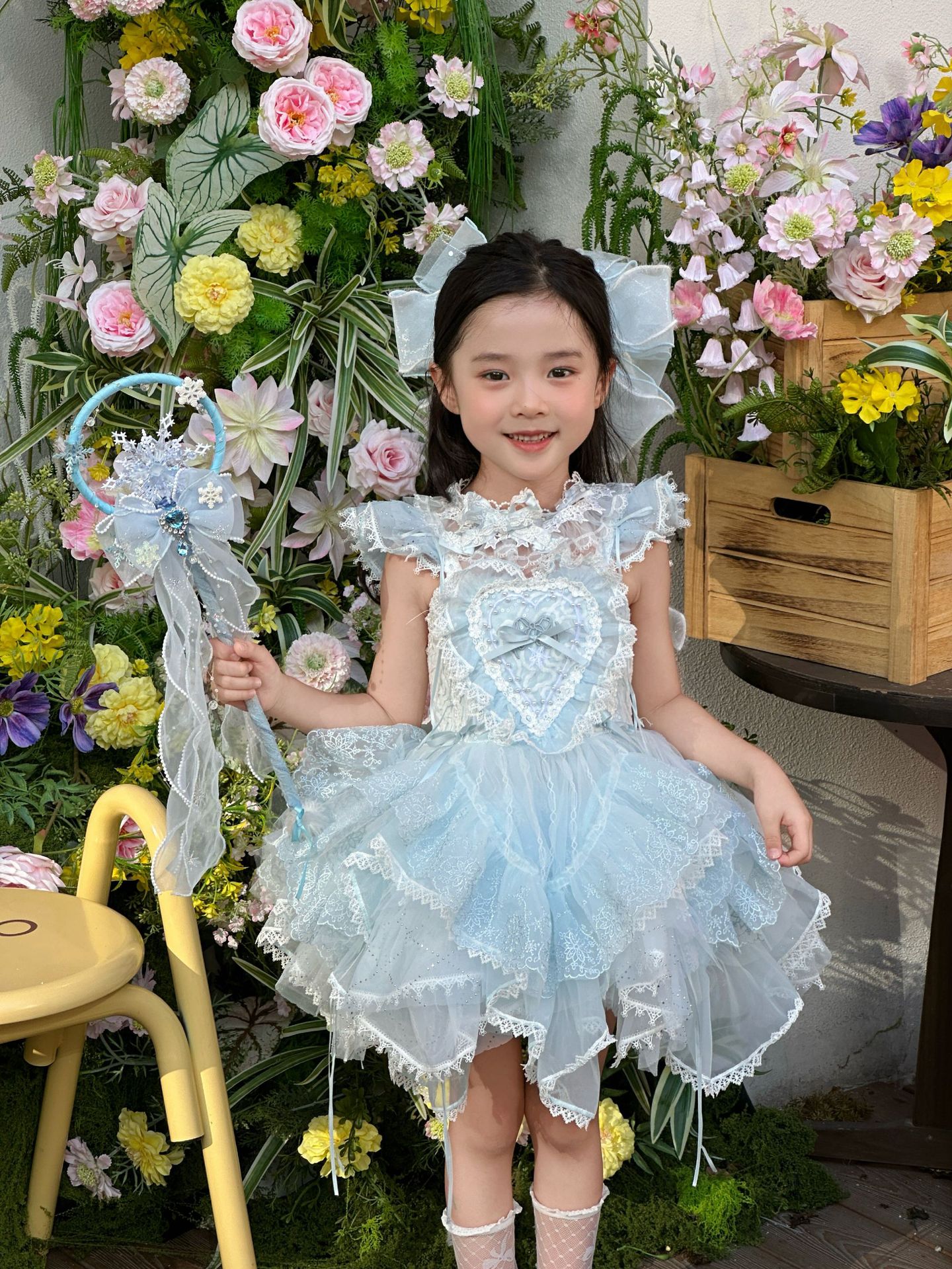 엘사 공주 드레스 소녀 로리타 드레스 2025 새로운 어린이 생일 드레스 퍼프 거즈 드레스 의상