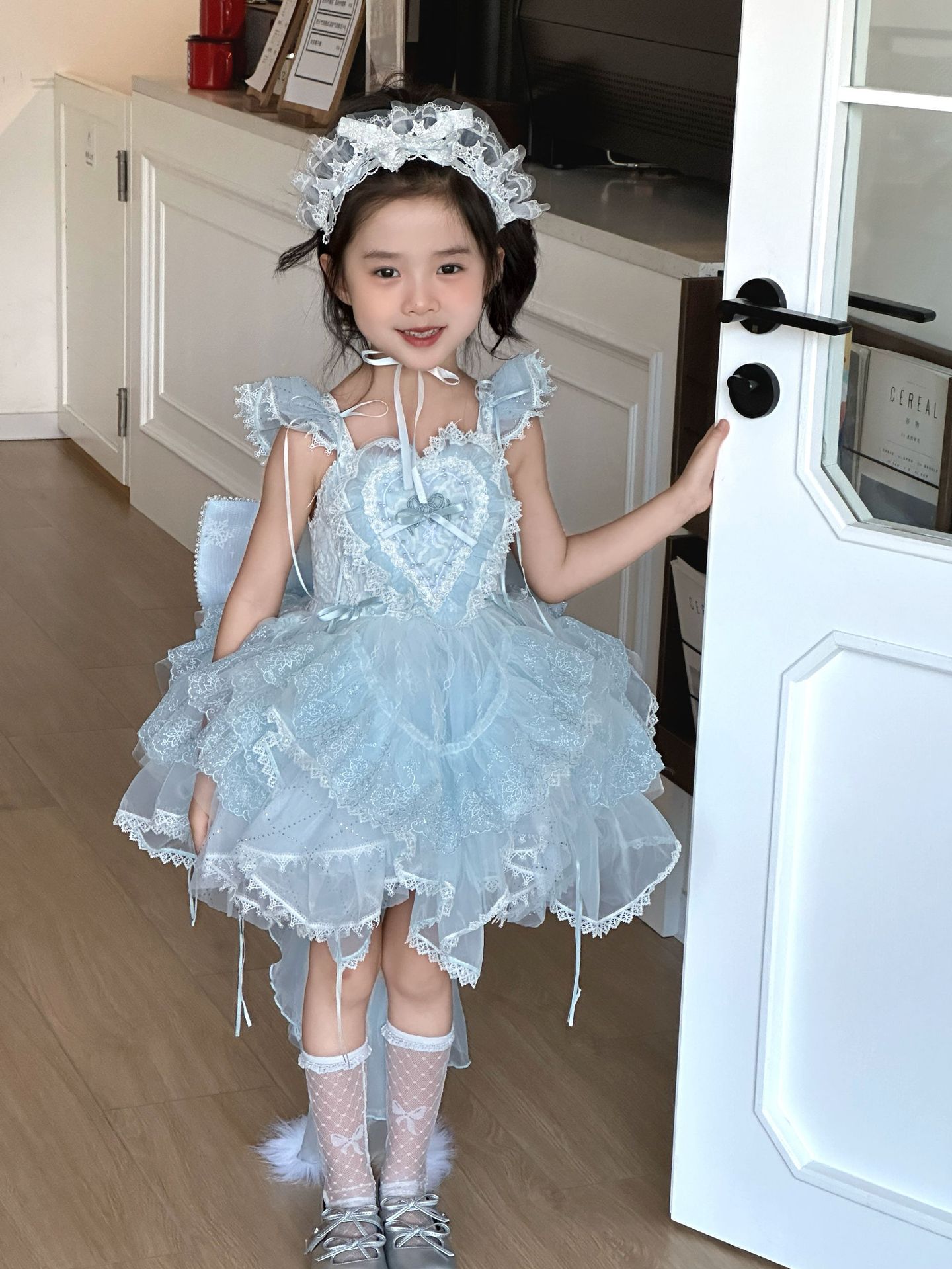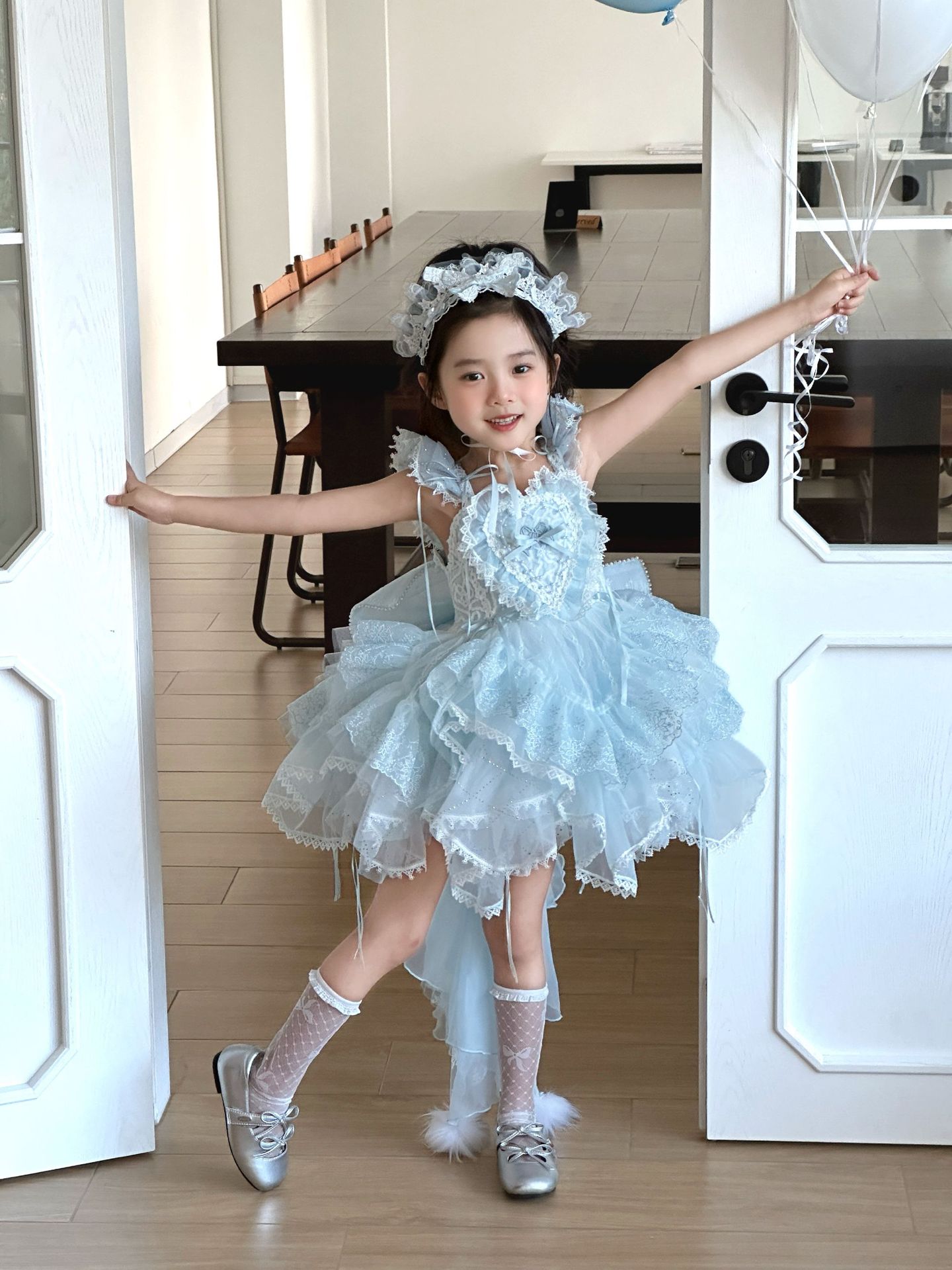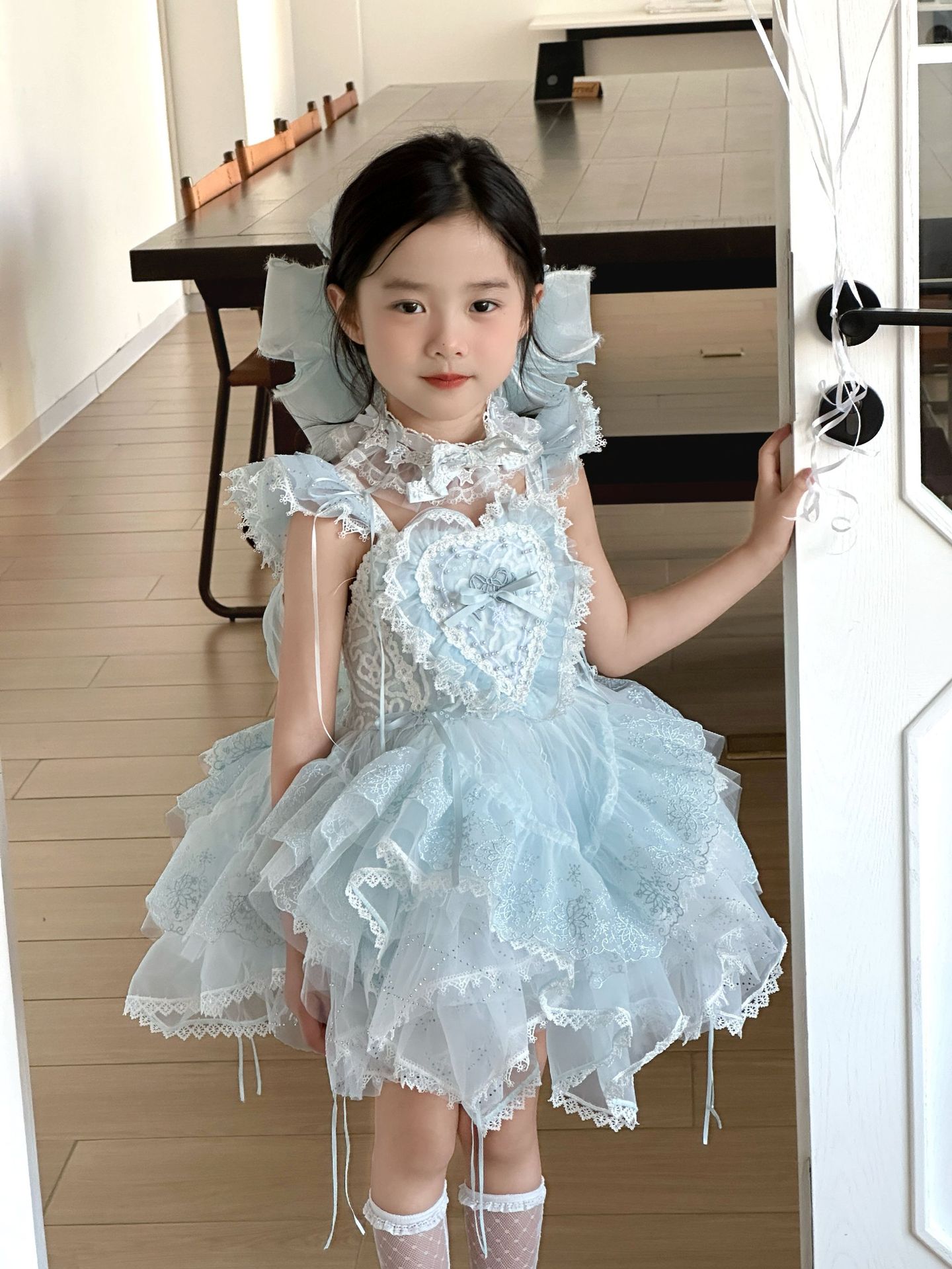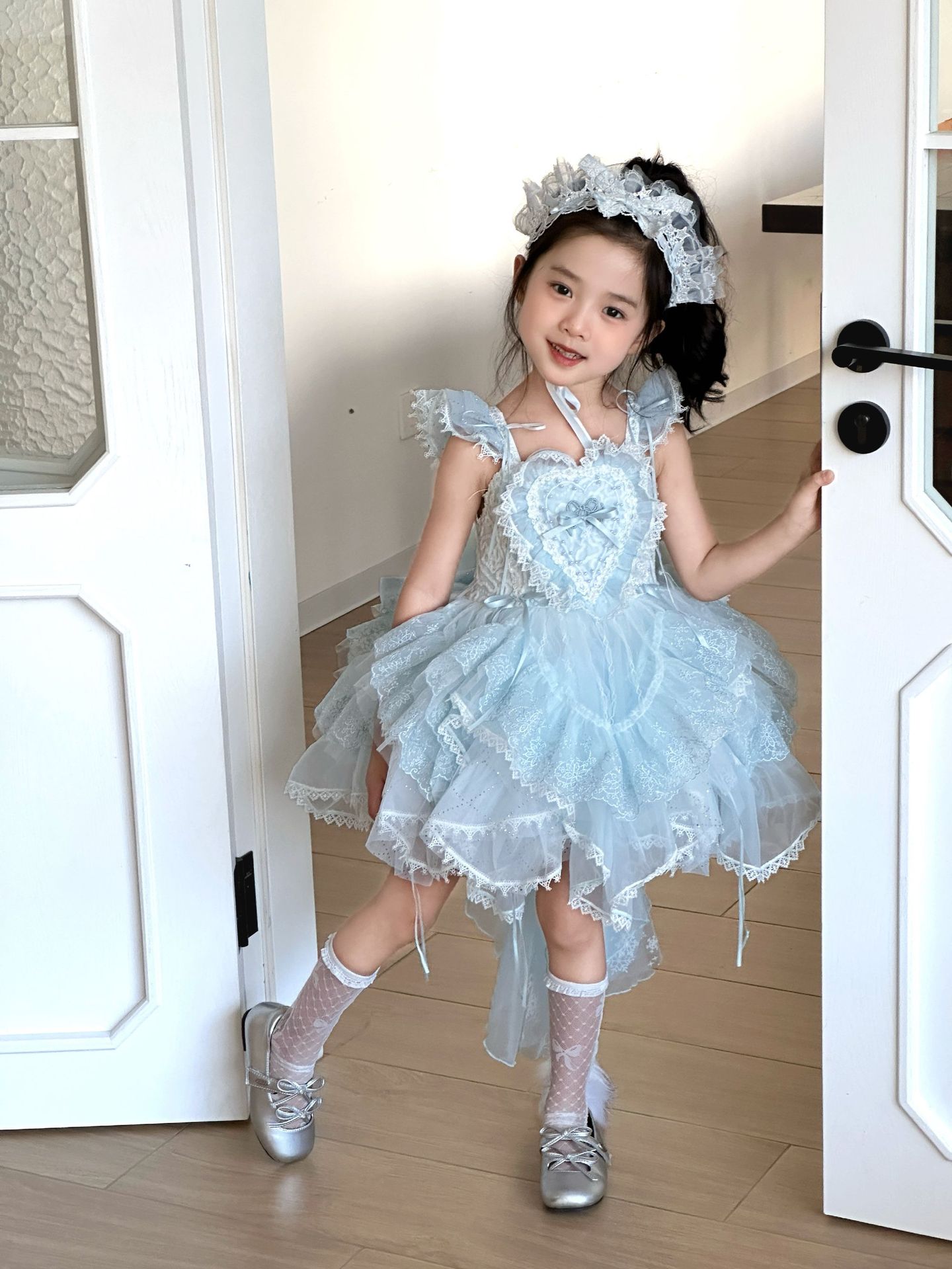 엘사 공주 드레스 소녀 로리타 드레스 2025 새로운 어린이 생일 드레스 퍼프 거즈 드레스 의상