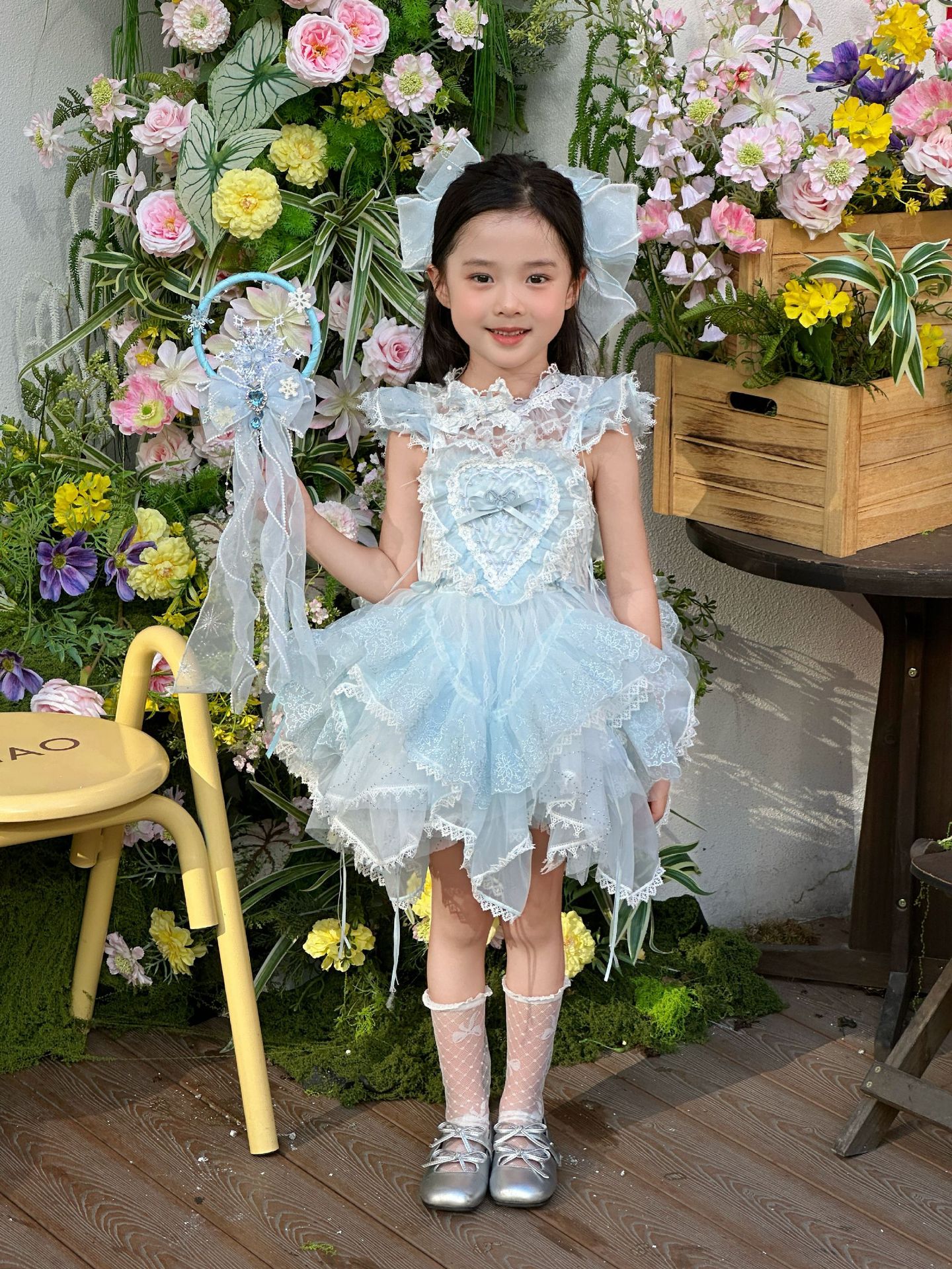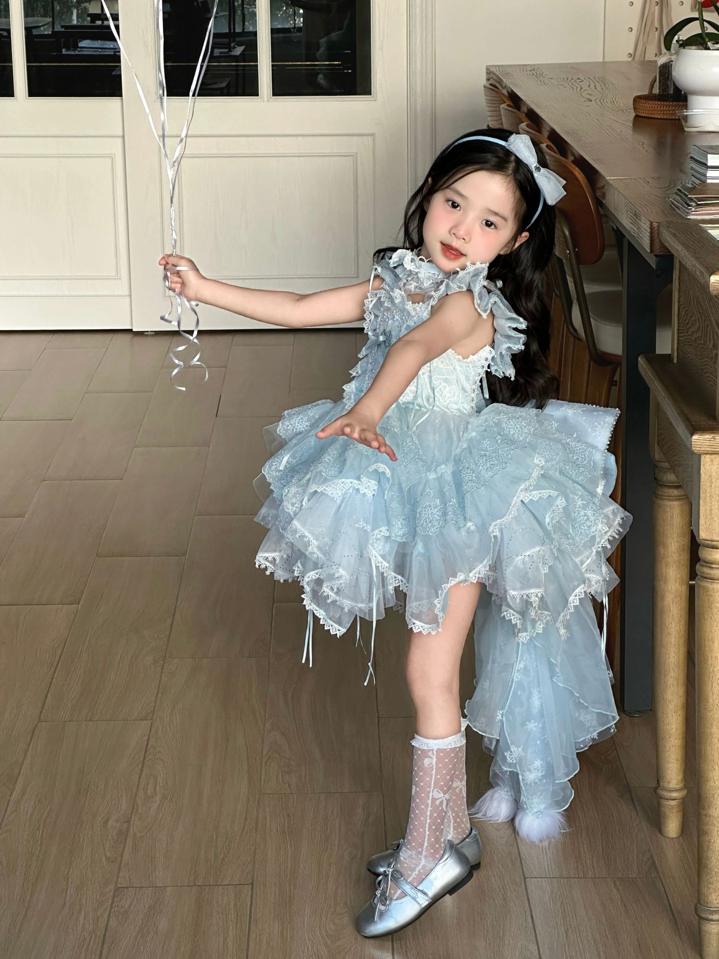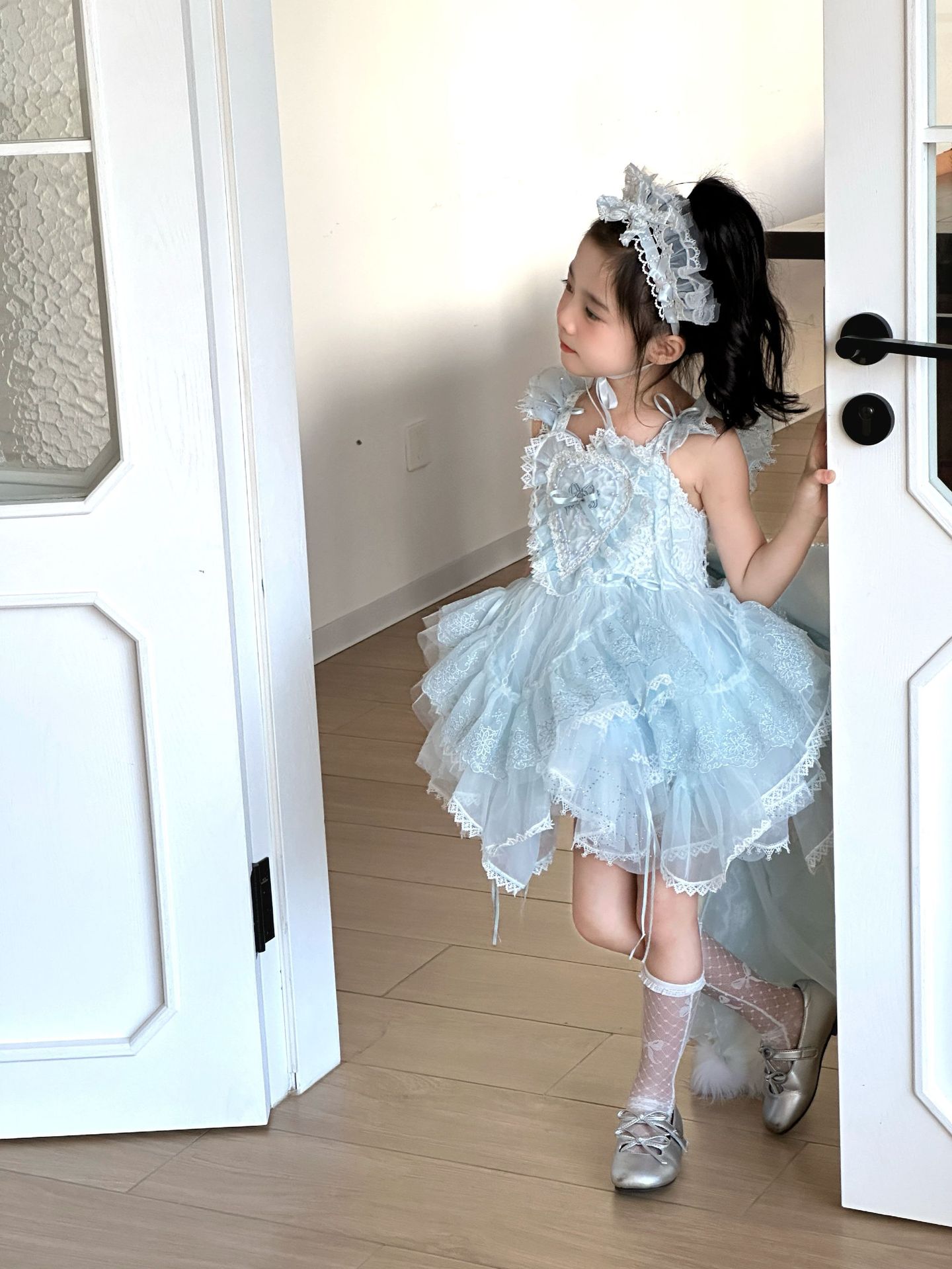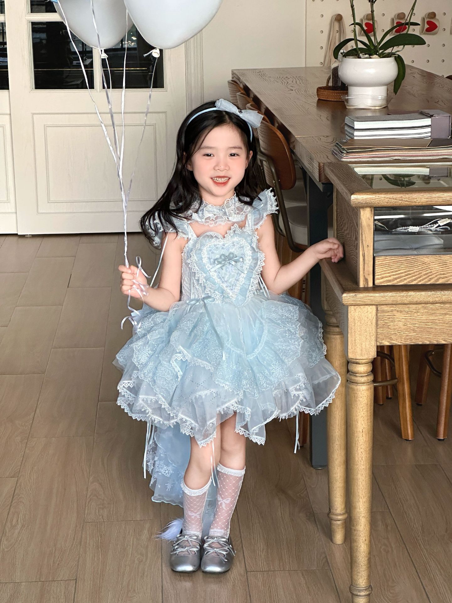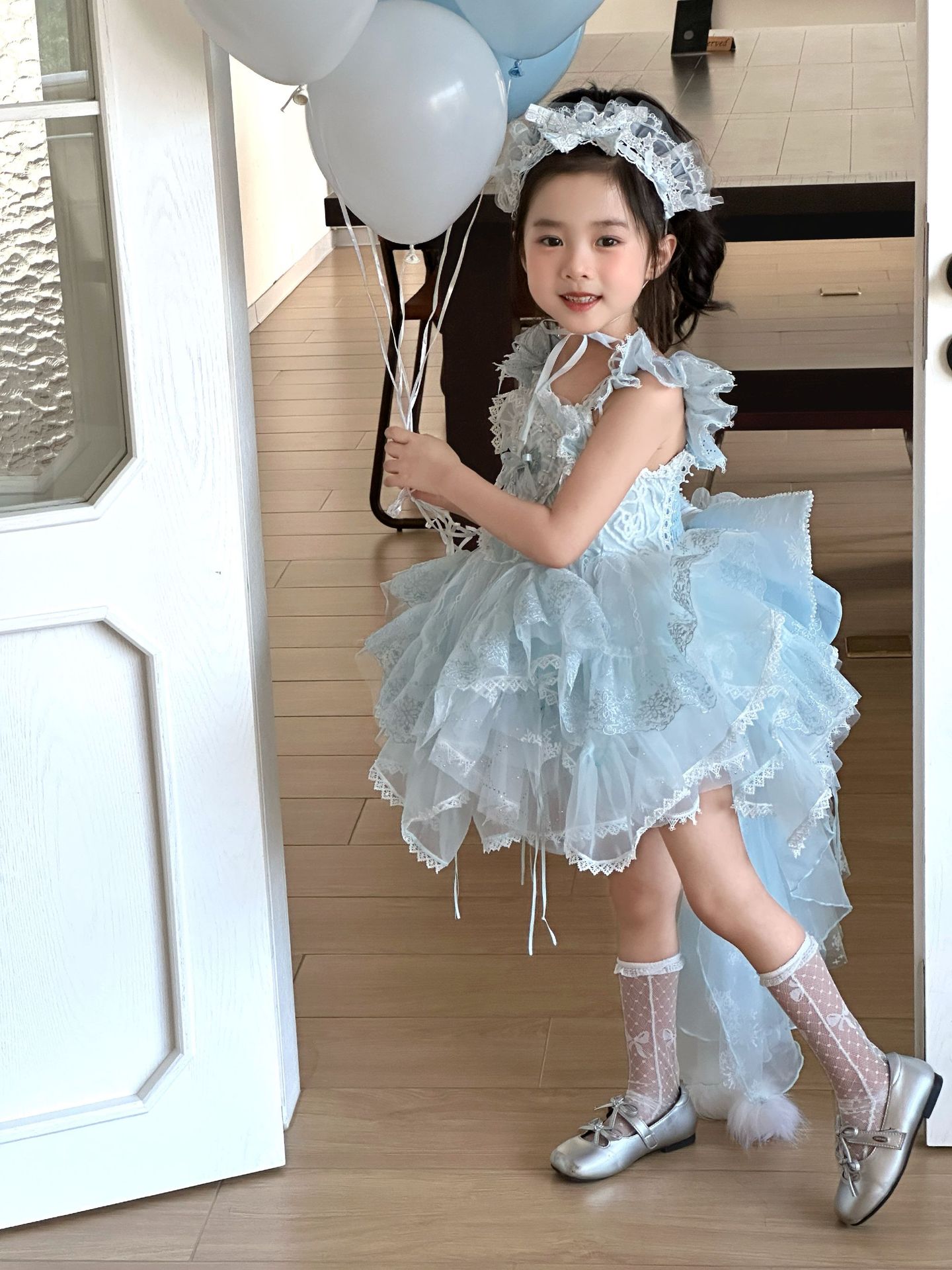 엘사 공주 드레스 소녀 로리타 드레스 2025 새로운 어린이 생일 드레스 퍼프 거즈 드레스 의상