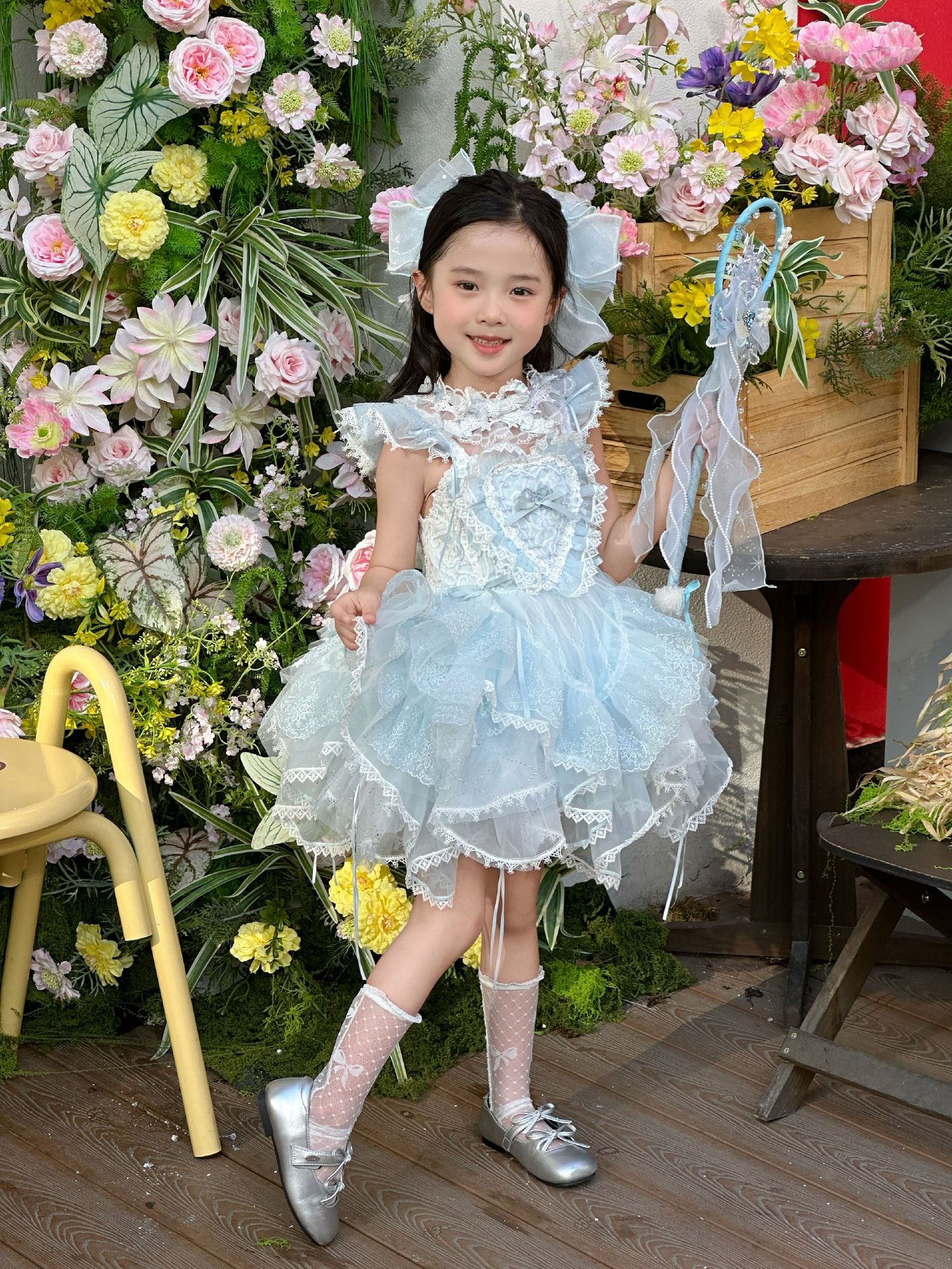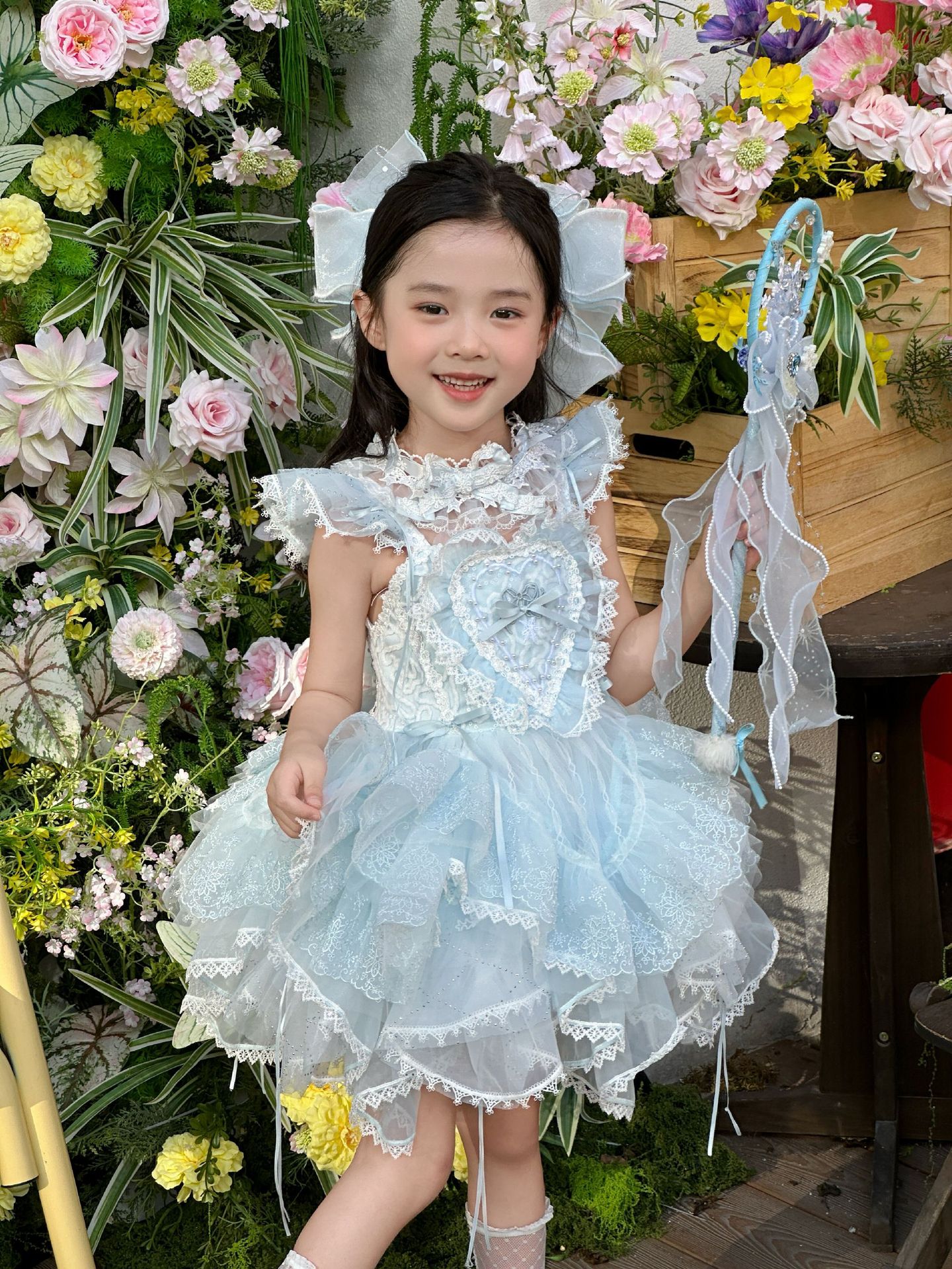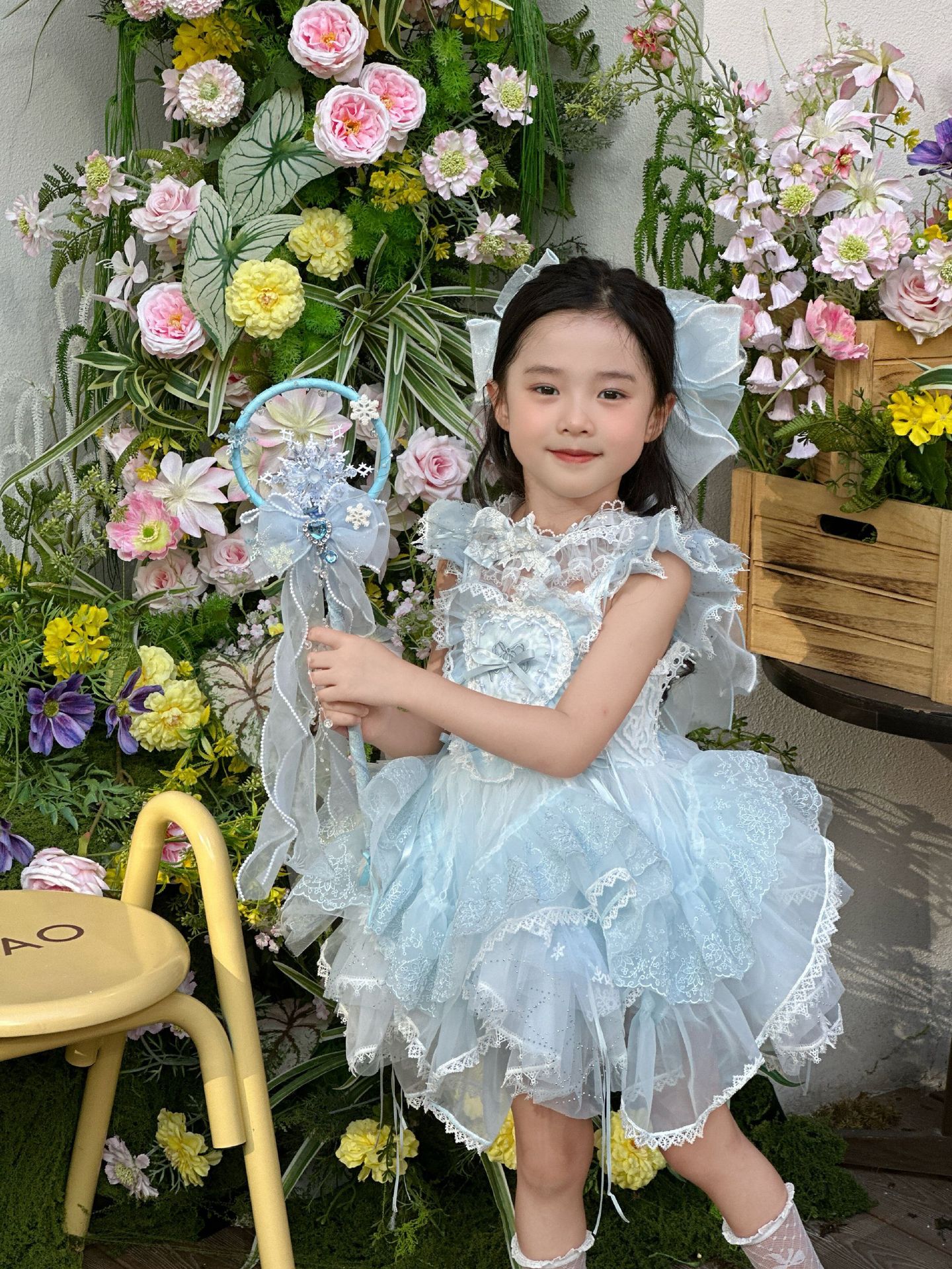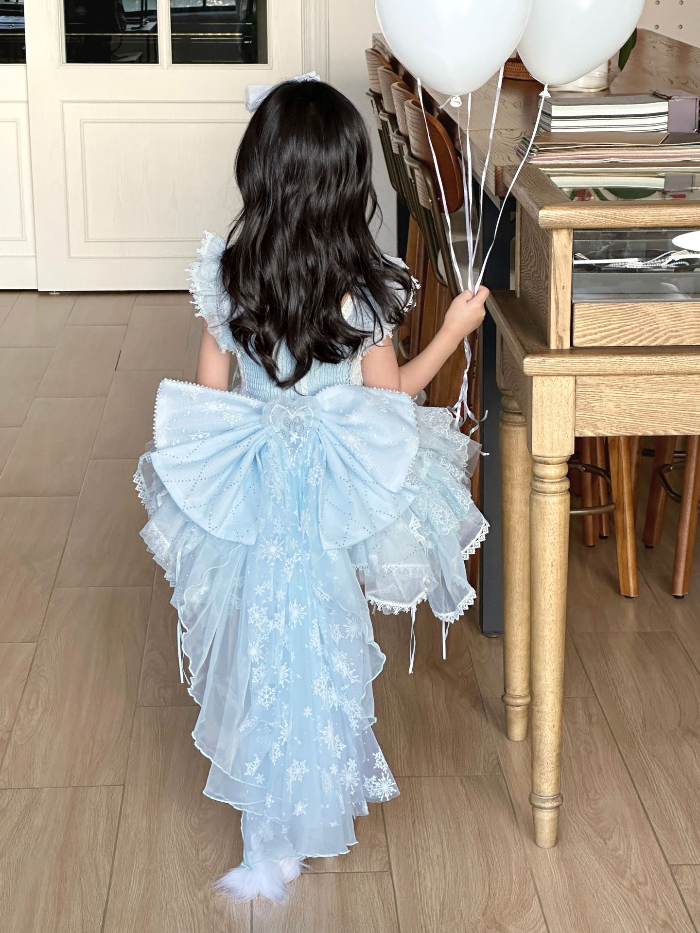 엘사 공주 드레스 소녀 로리타 드레스 2025 새로운 어린이 생일 드레스 퍼프 거즈 드레스 의상
