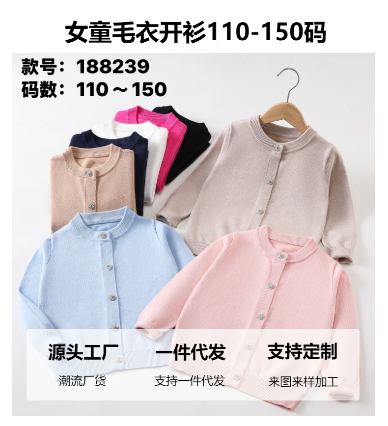 대외 무역 새로운 어린이 니트 카디건 베이비 스웨터 재킷 2025 코어 스펀 원사 라운드 넥 솔리드 컬러 자수 탑 트렌디스토어 가기