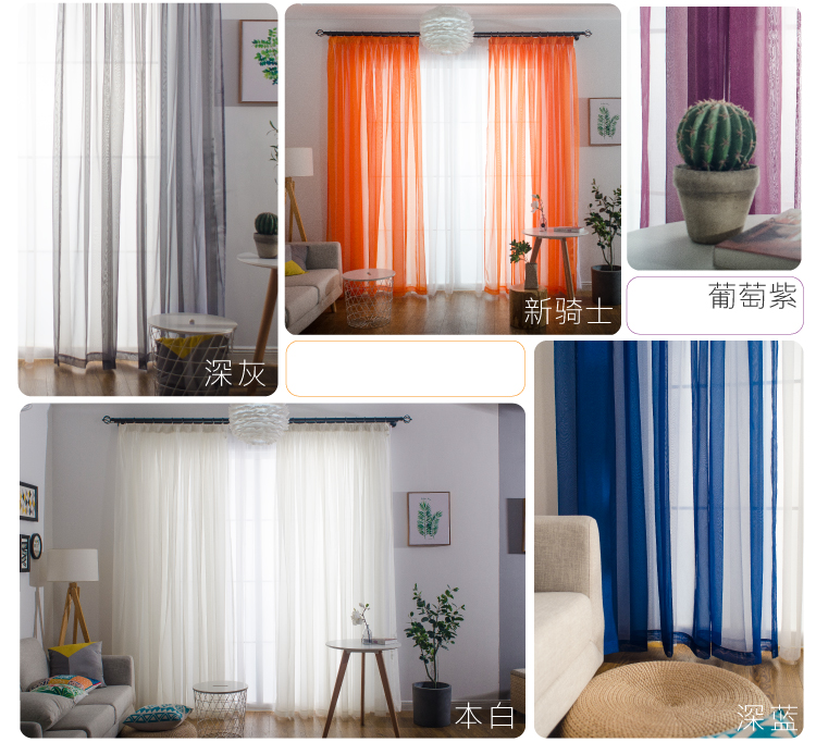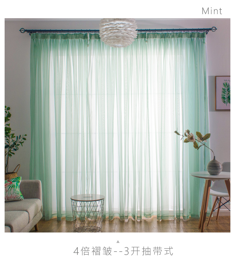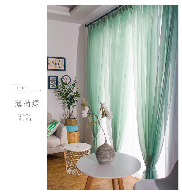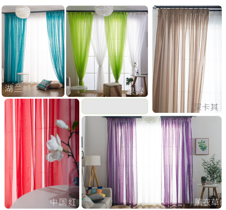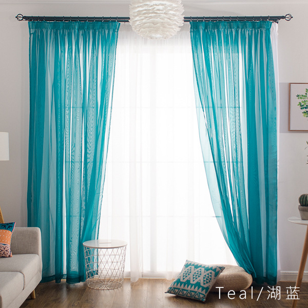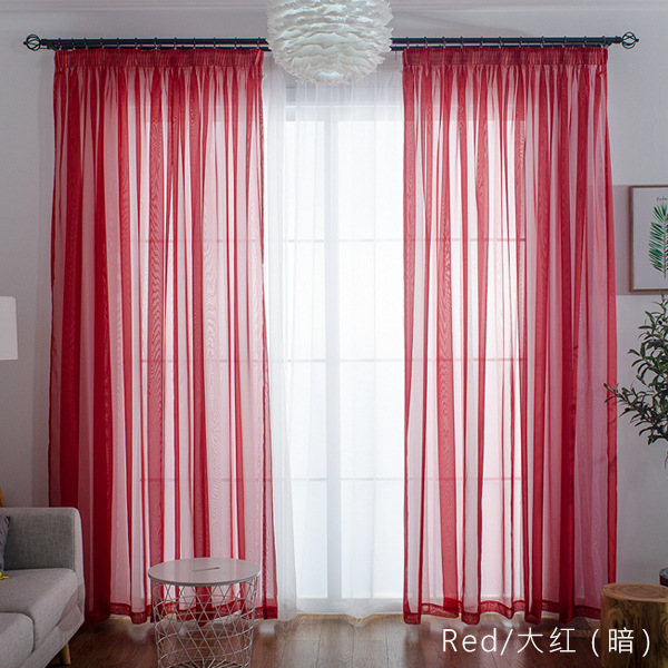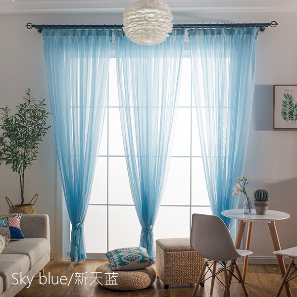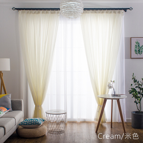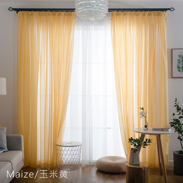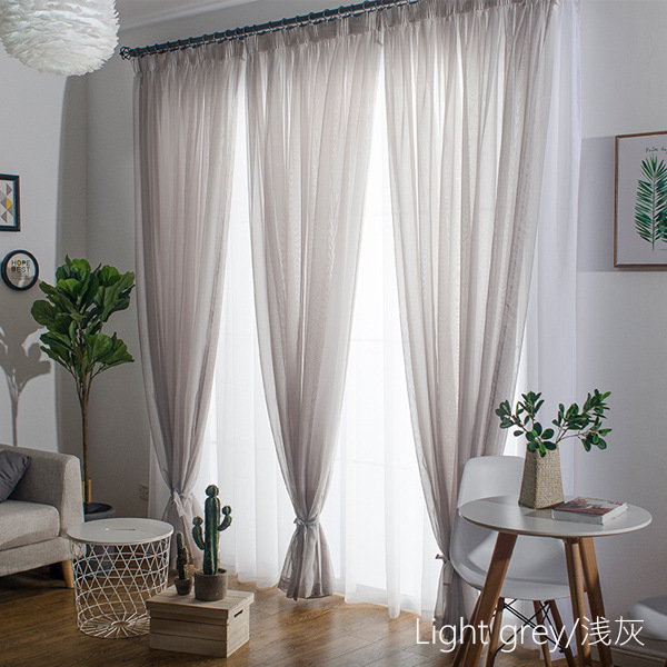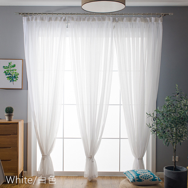 심플한 단색 거즈 커튼, 창문 스크린, 투광 침대 커튼, 거실 발코니 바닥 창, 침실 완제품스토어 가기