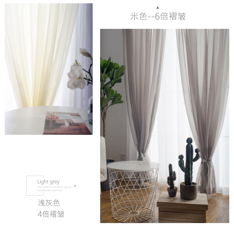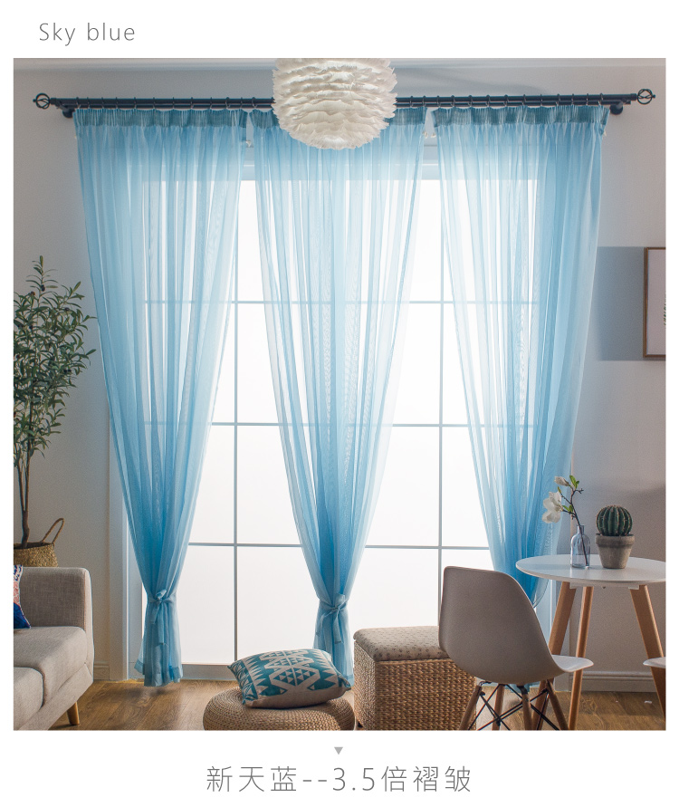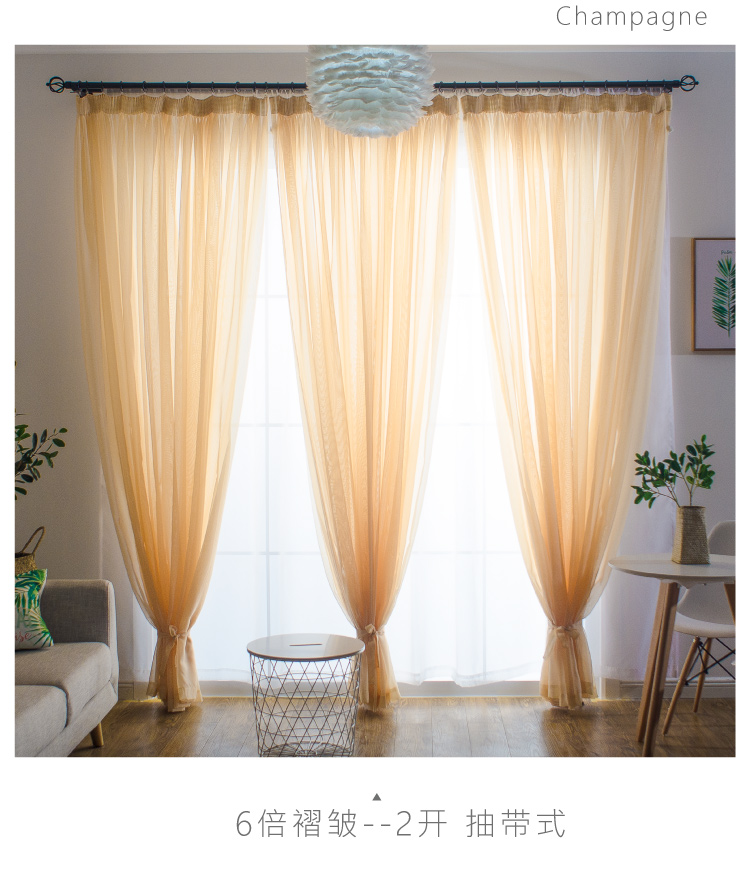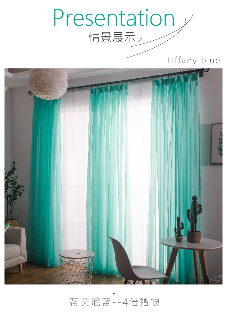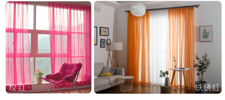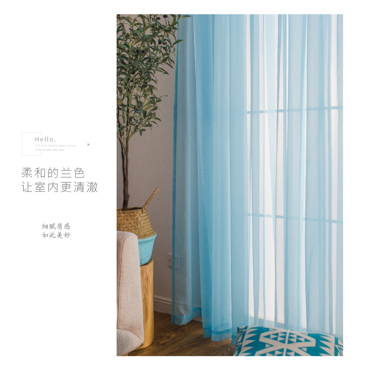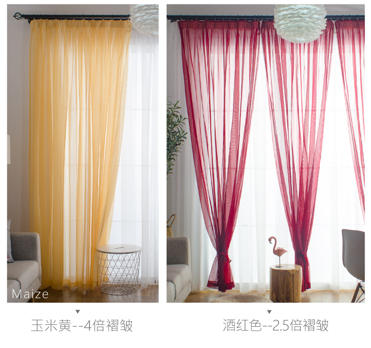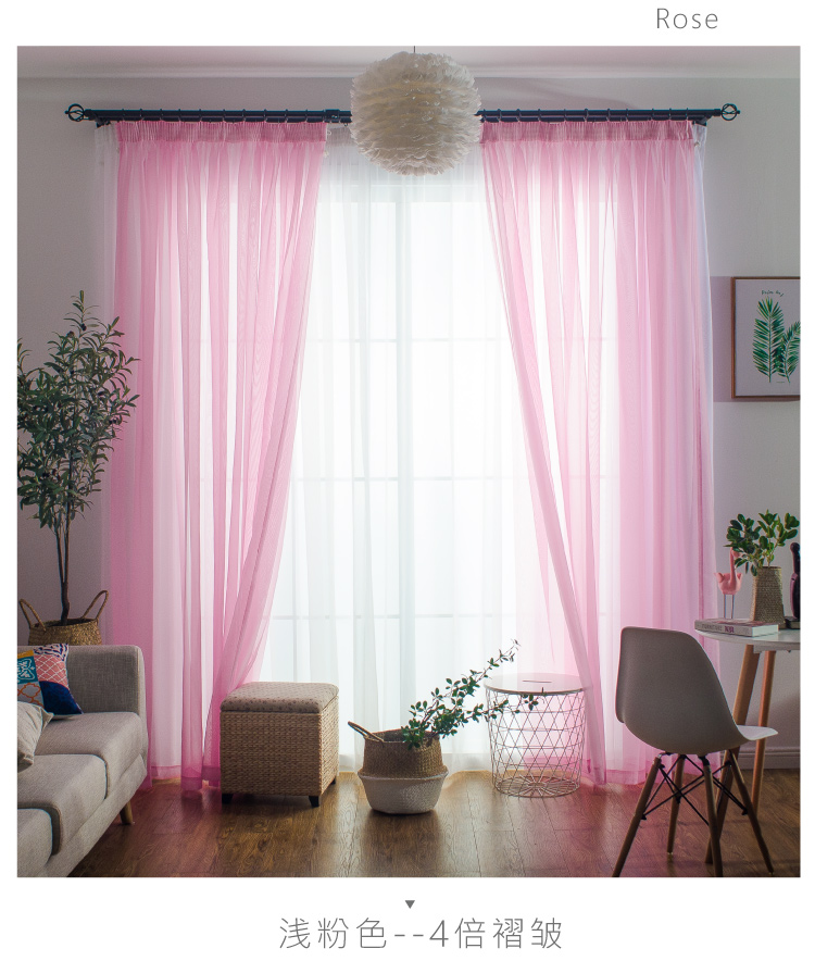 심플한 단색 거즈 커튼, 창문 스크린, 투광 침대 커튼, 거실 발코니 바닥 창, 침실 완제품스토어 가기