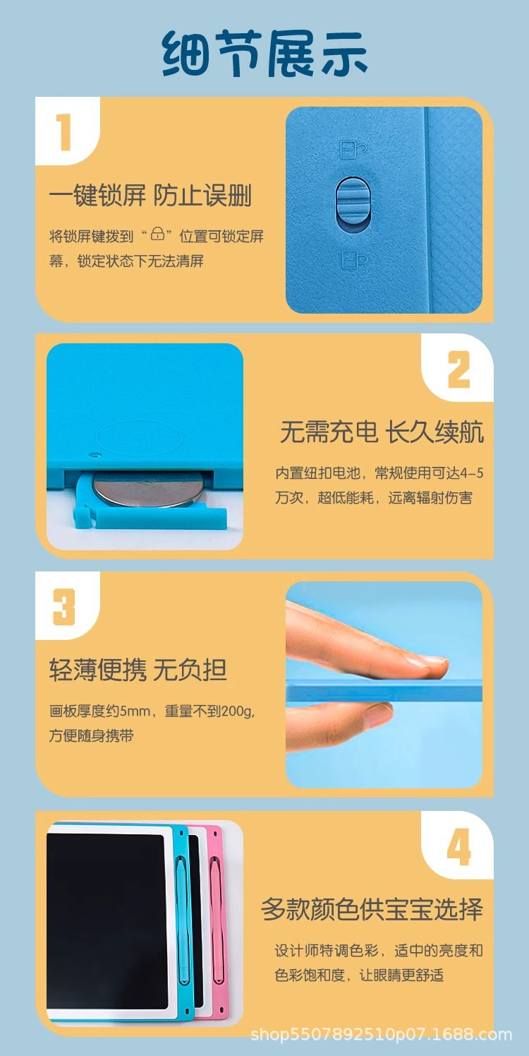 LCD 드로잉 보드 필기 보드는 한 번의 클릭으로 화면을 지우고 어린이가 글쓰기와 그림을 배울 수 있도록 작은 칠판을 제거합니다.스토어 가기