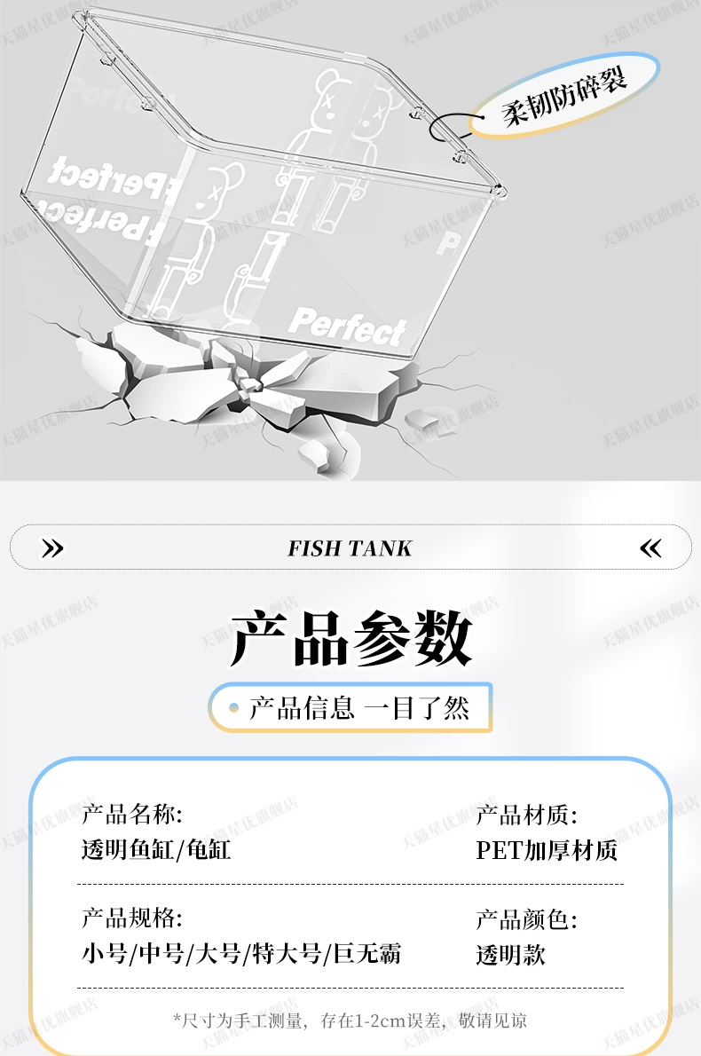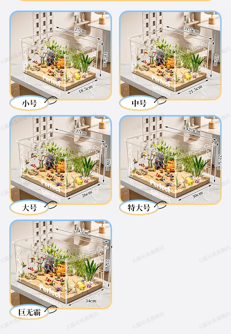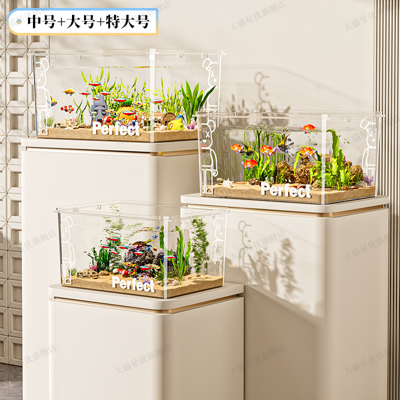 투명한 수조, 소형 가정용 금붕어 수조, 데스크탑 거실 모조 유리 생태 조경 수조, 사각형 두꺼운 거북이 수조스토어 가기