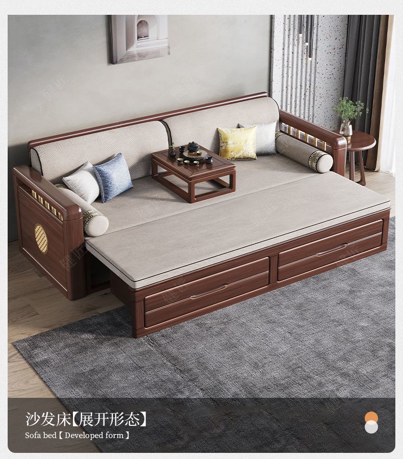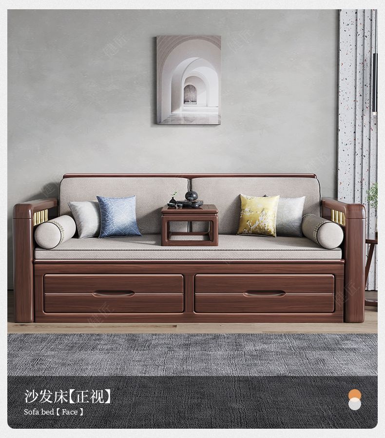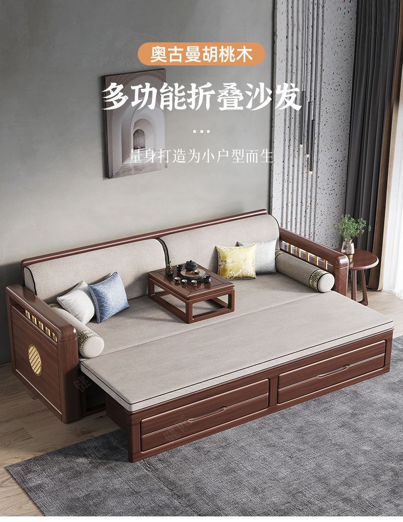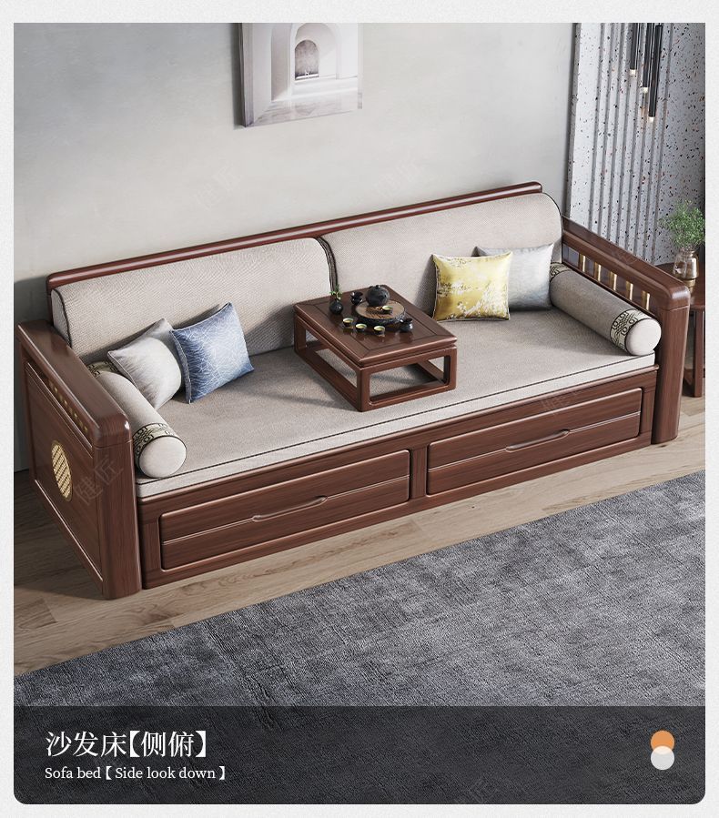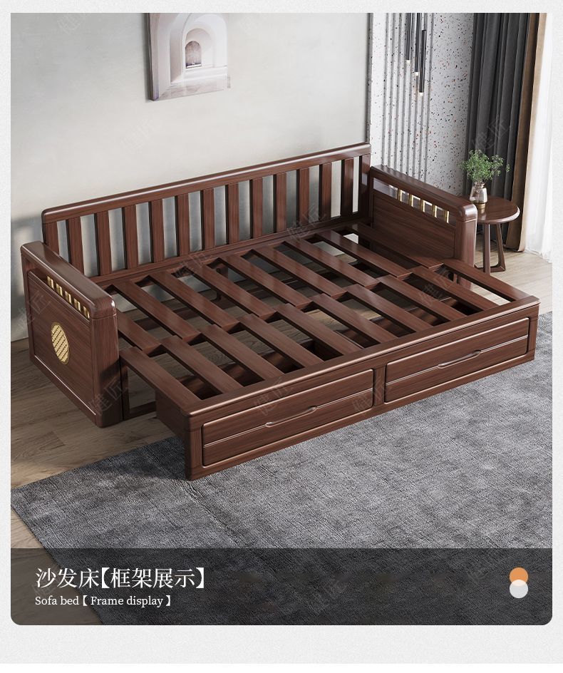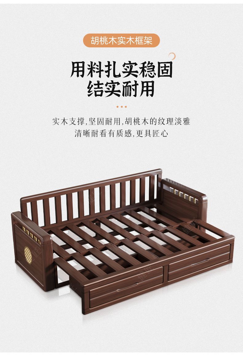 새로운 중국 스타일 슬라이딩 침대 호두 단단한 나무 소파 침대 홈 간단한 Luohan 침대 작은 아파트 거실 텔레스코픽 침대스토어 가기