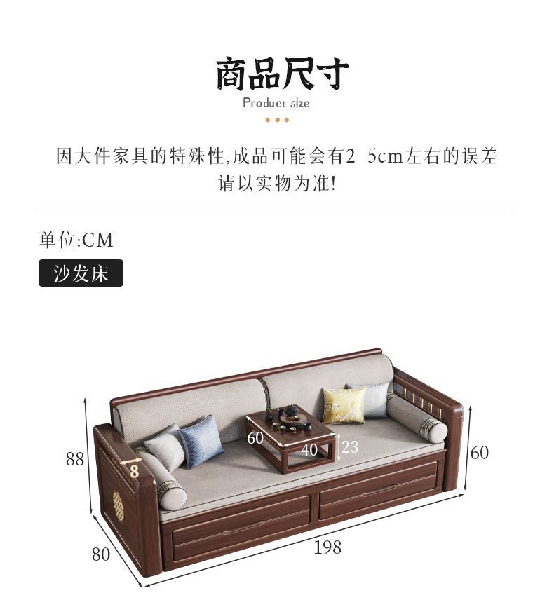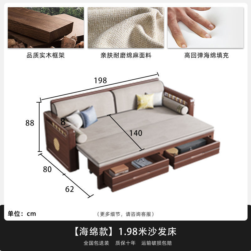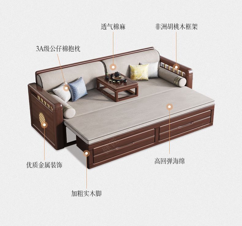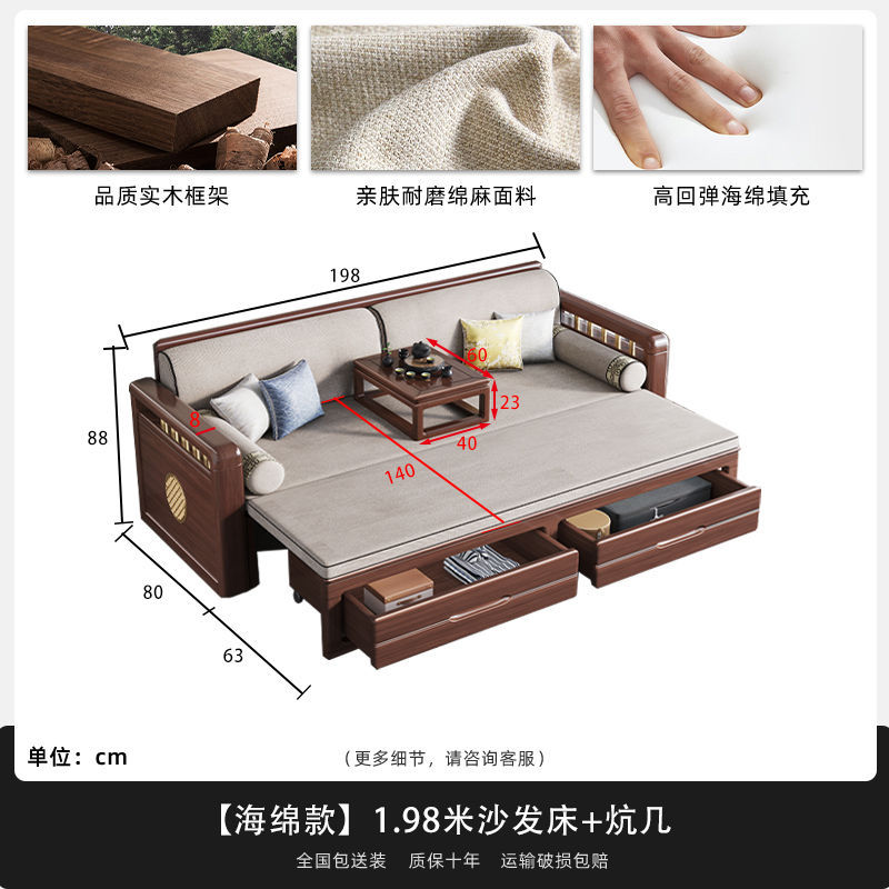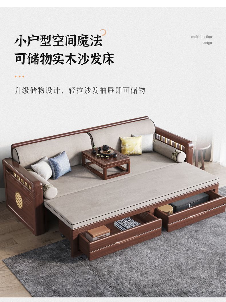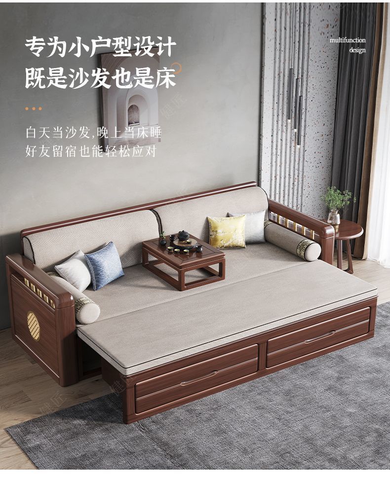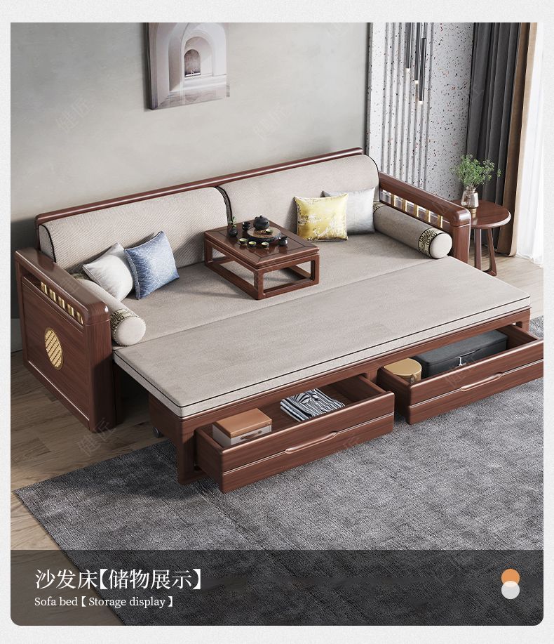 새로운 중국 스타일 슬라이딩 침대 호두 단단한 나무 소파 침대 홈 간단한 Luohan 침대 작은 아파트 거실 텔레스코픽 침대스토어 가기
