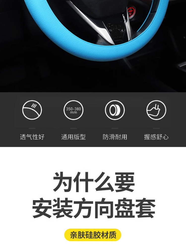 자동차 범용 실리콘 스티어링 휠 커버 스포츠 스티어링 휠 커버 자동차 미끄럼 방지 땀 흡수 및 무취 올 시즌스토어 가기